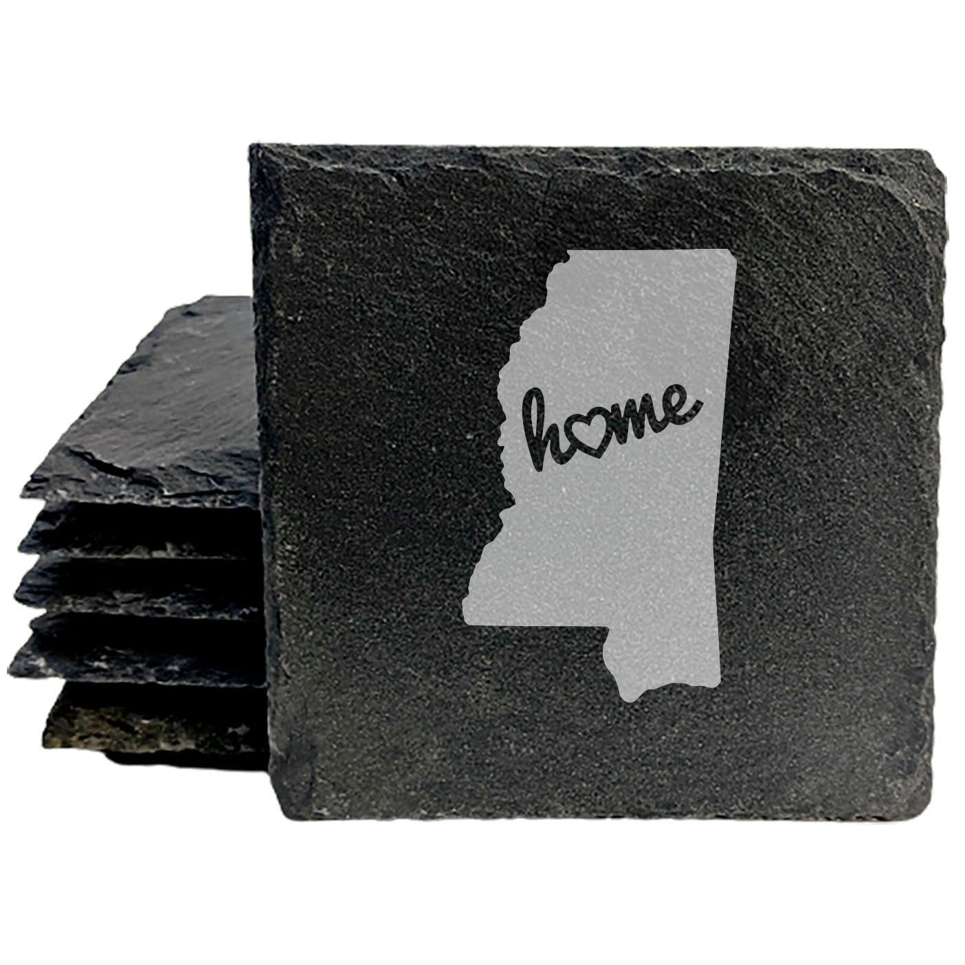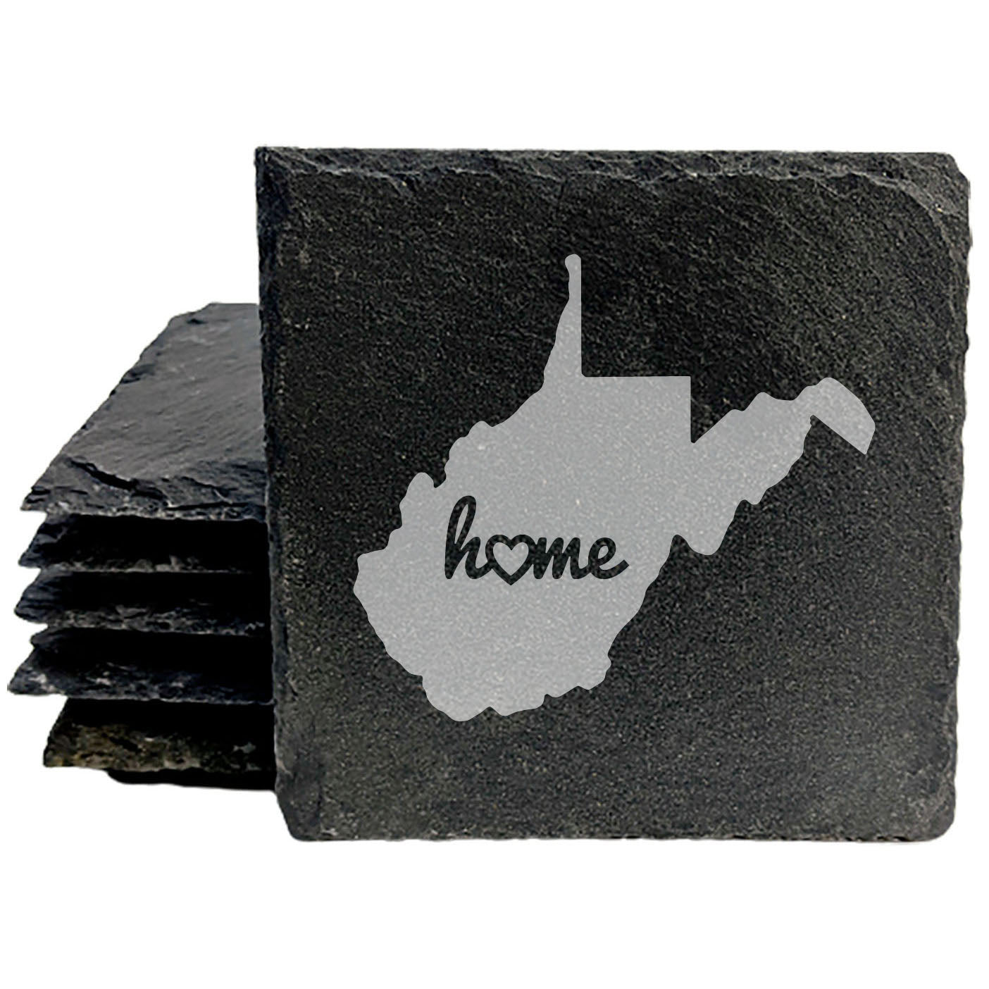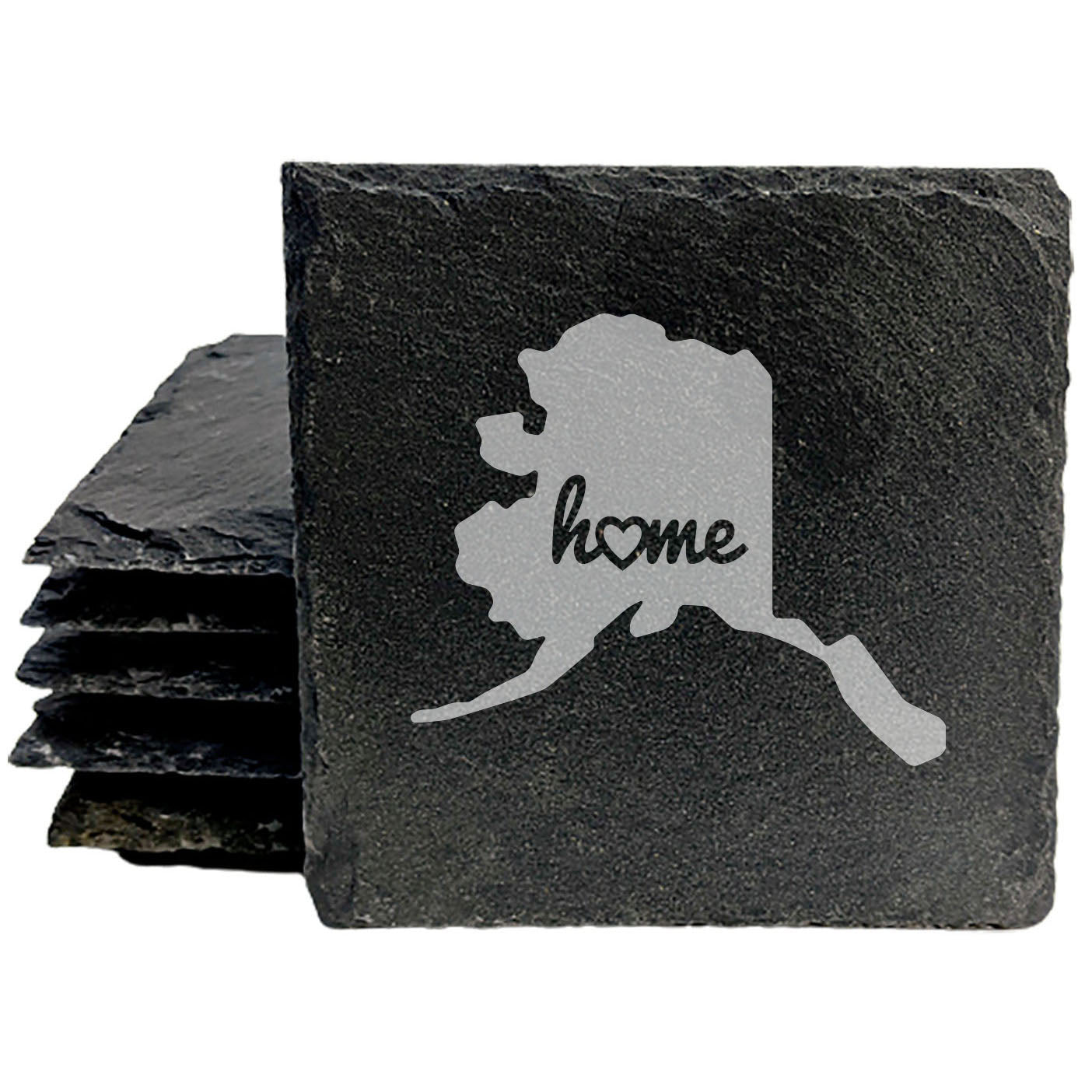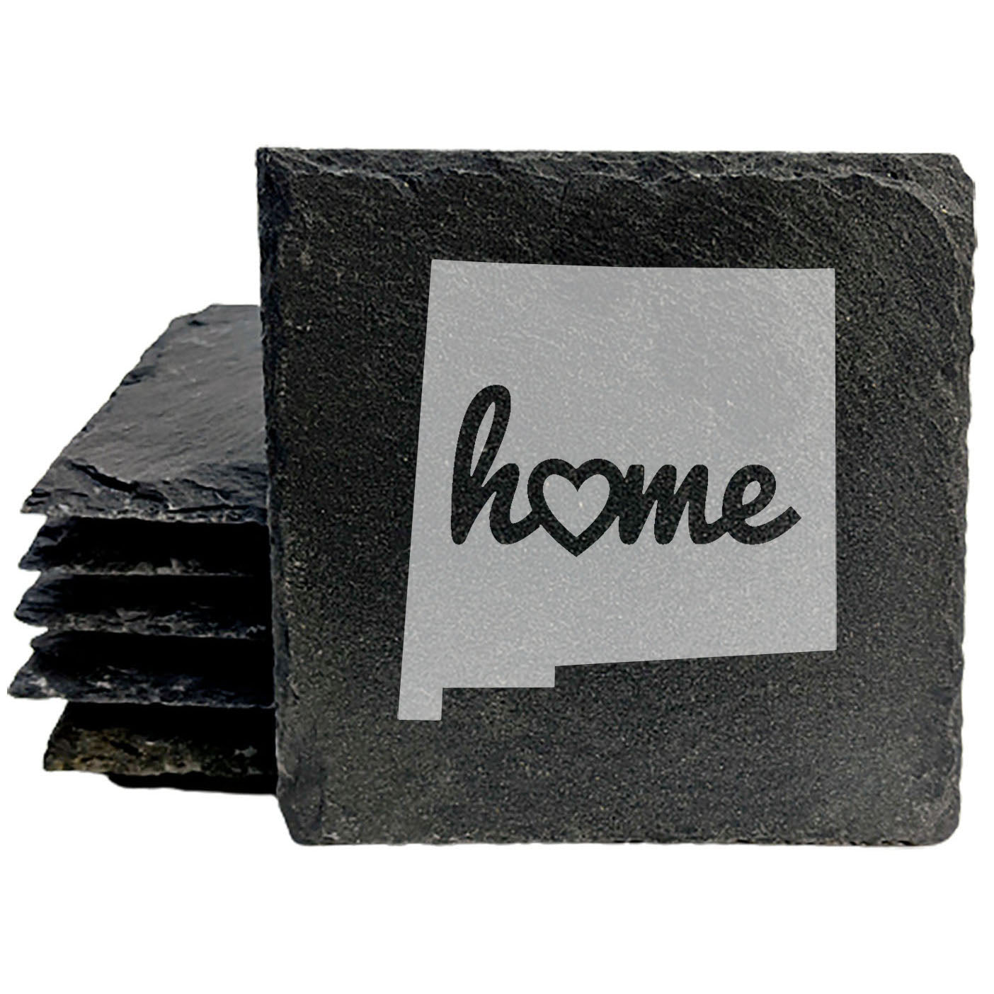 Rustic Slate Coasters Set of 4 - Idaho 'Home' Design with Heart - Perfect Gift for Holidays, Birthdays, Housewarming - Round 4" - Natural Chipped Edge, Rubber Feet - Made in Oregon, USA
