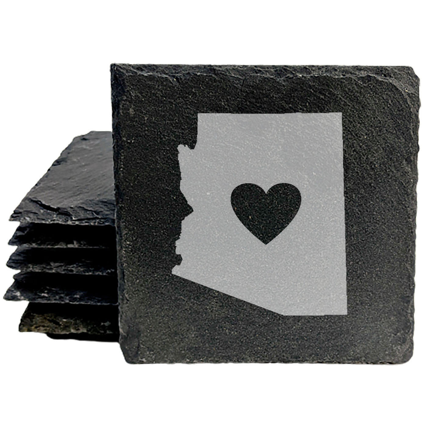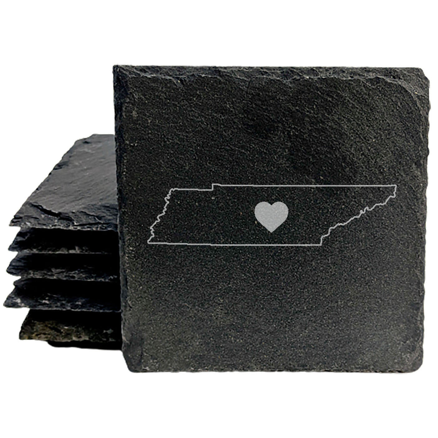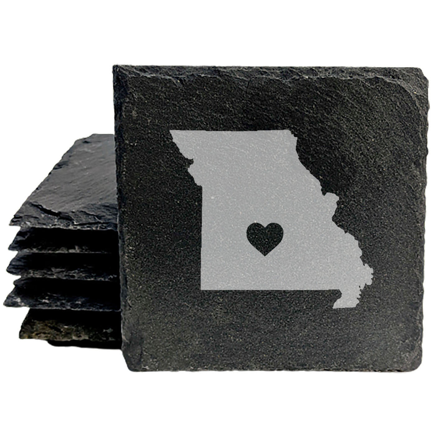 Rustic Slate Coasters Set of 4, Square, Laser Etched 'LOVE' Design with Illinois State, Perfect Gift for Holidays, Birthdays, Housewarming, Made in Oregon, USA, Natural Chipped Edge, Rubber Feet