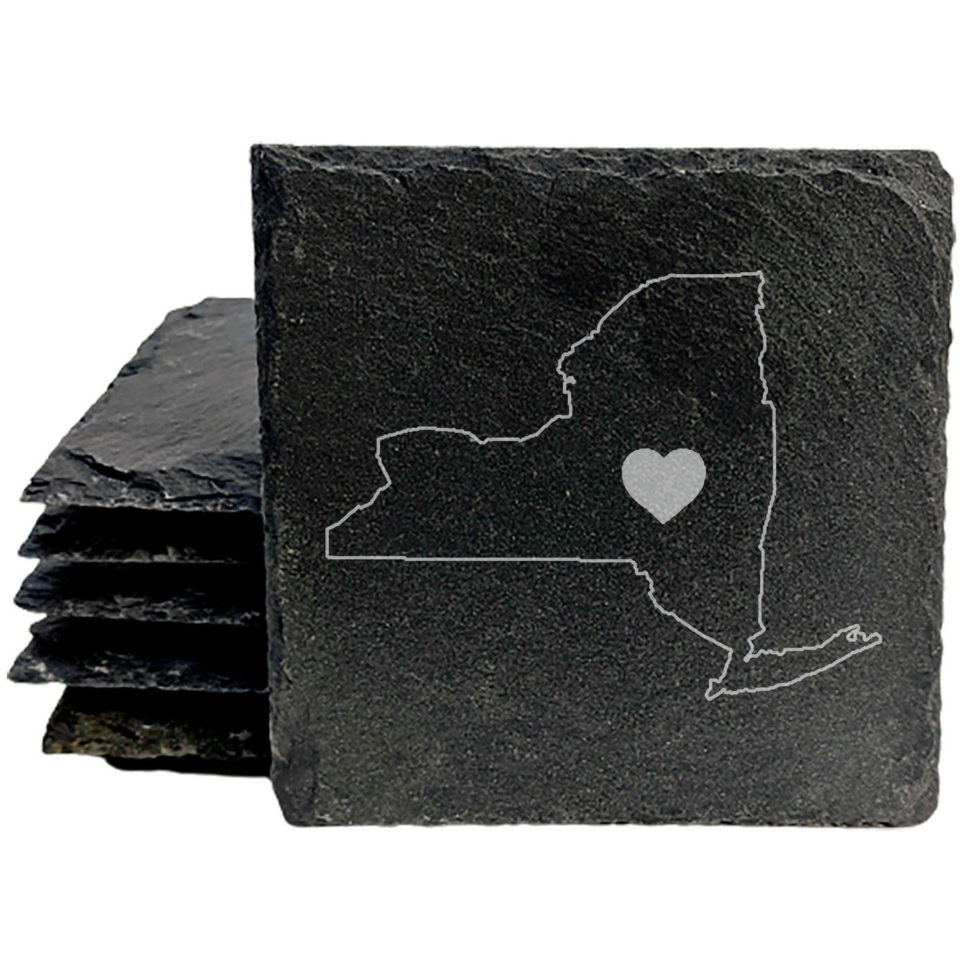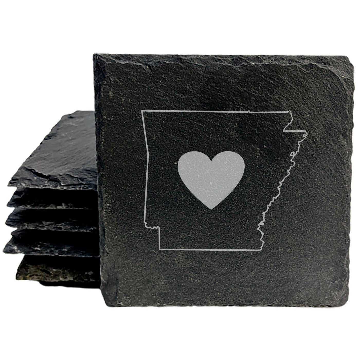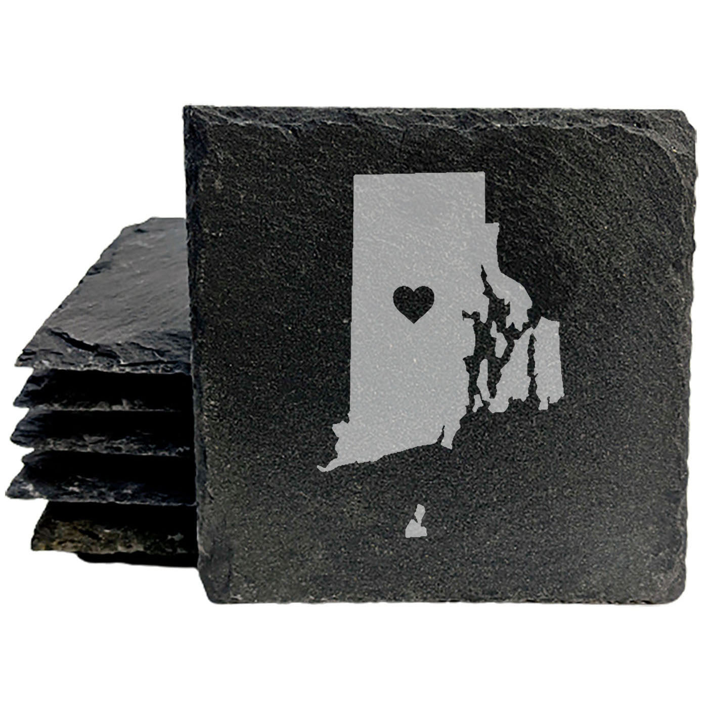 Rustic Slate Coasters Set of 4, Square, Laser Etched 'LOVE' Design with Illinois State, Perfect Gift for Holidays, Birthdays, Housewarming, Made in Oregon, USA, Natural Chipped Edge, Rubber Feet