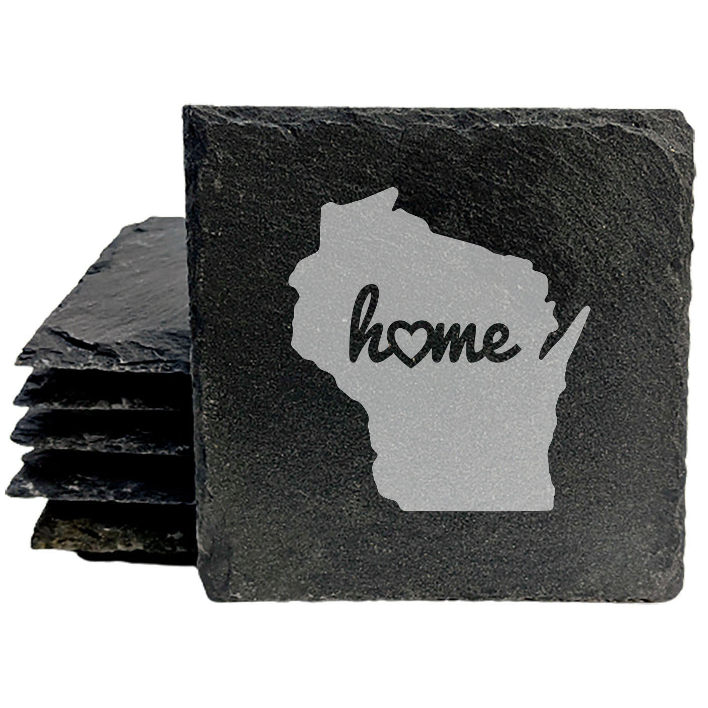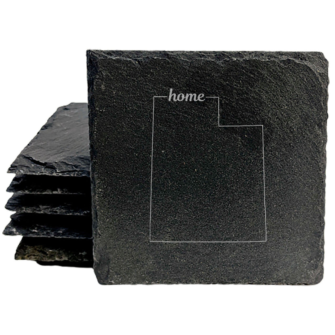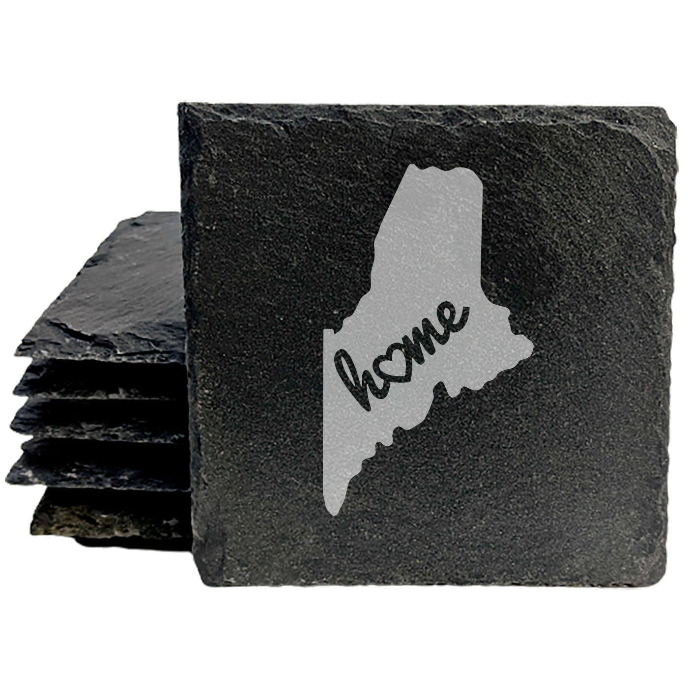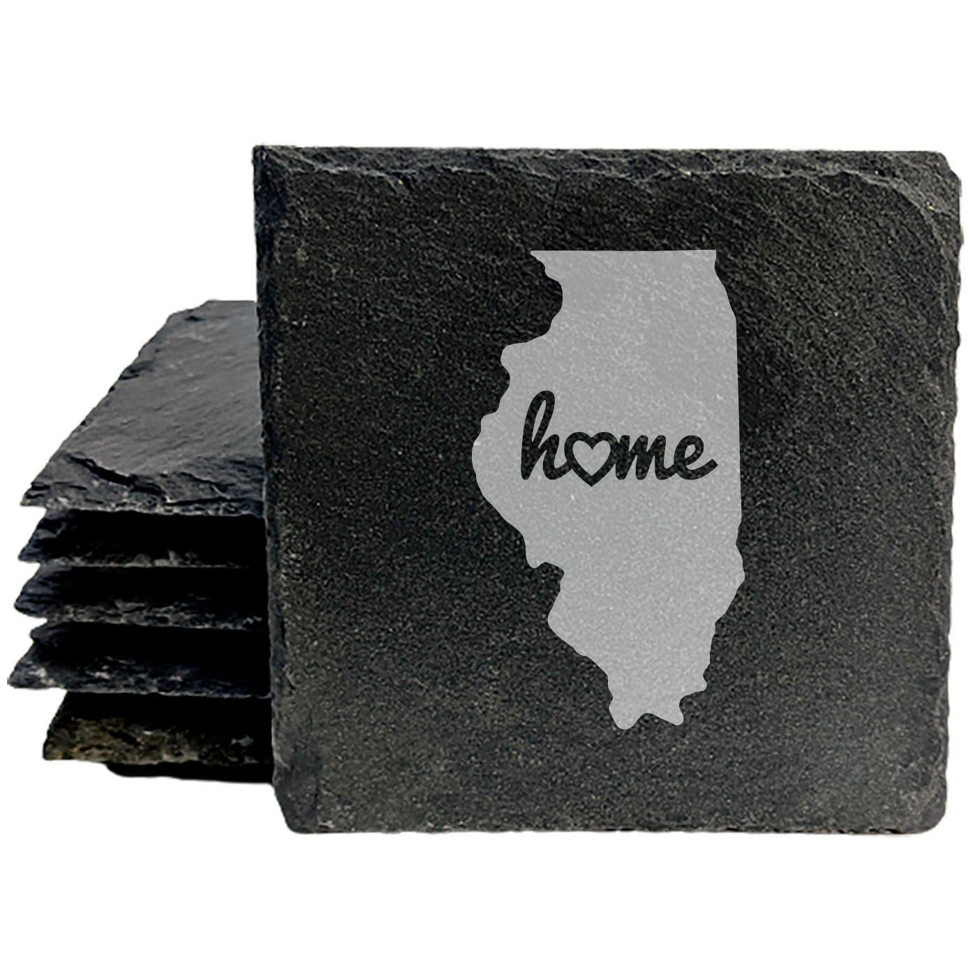 Rustic Slate Coasters Set of 4 - Laser Etched 'Home' Design with Illinois State - Perfect Gift for Holidays, Birthdays, Housewarming - 4" Round/Square - Made in Oregon, USA - Natural Chipped Edge