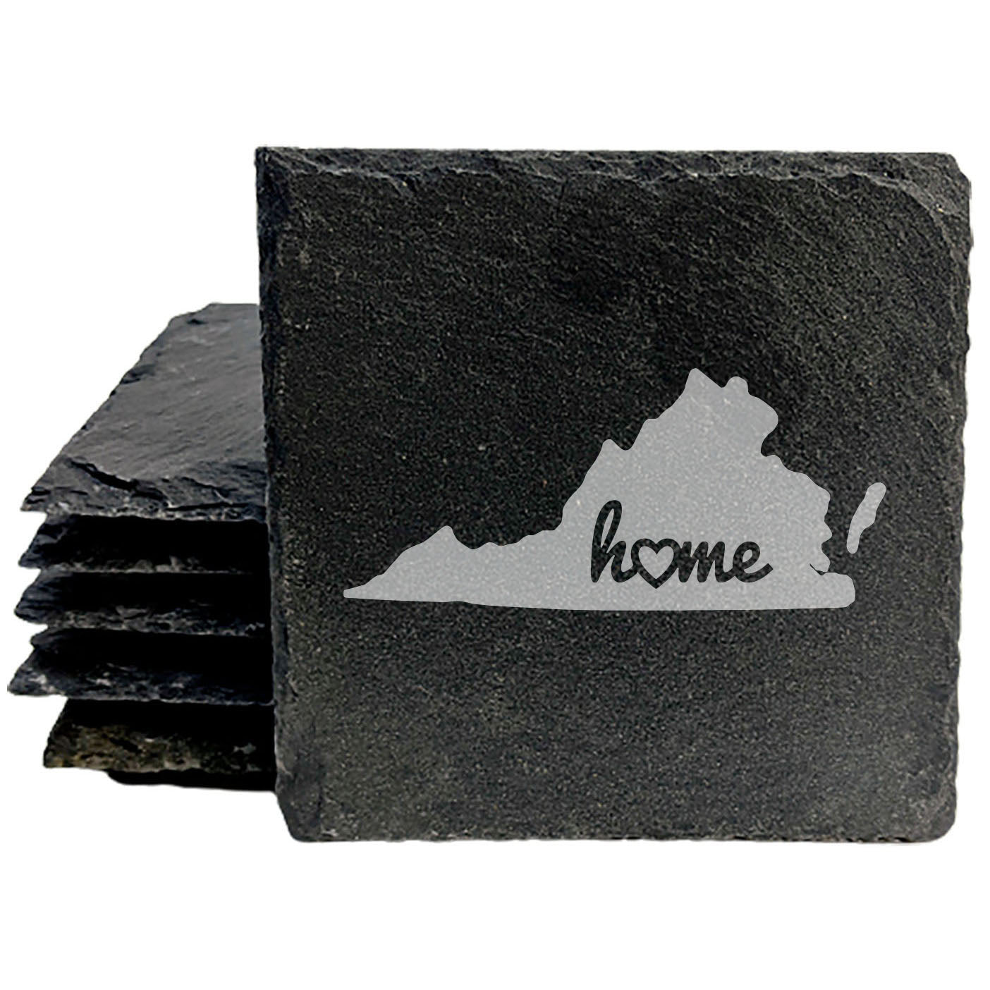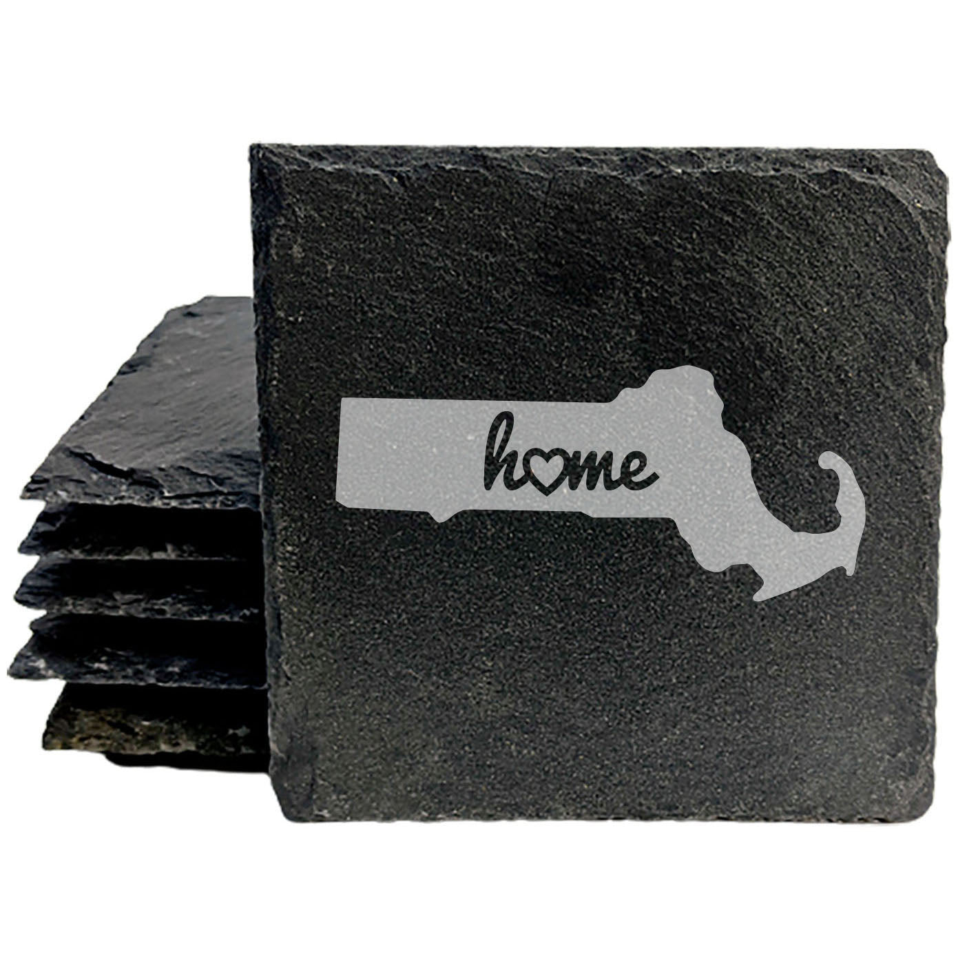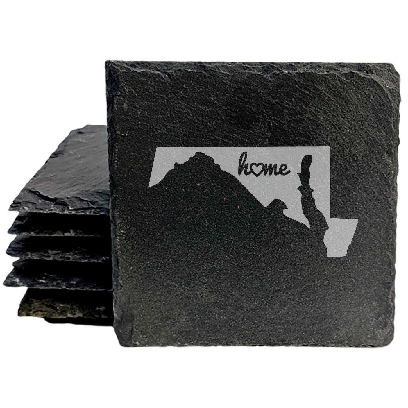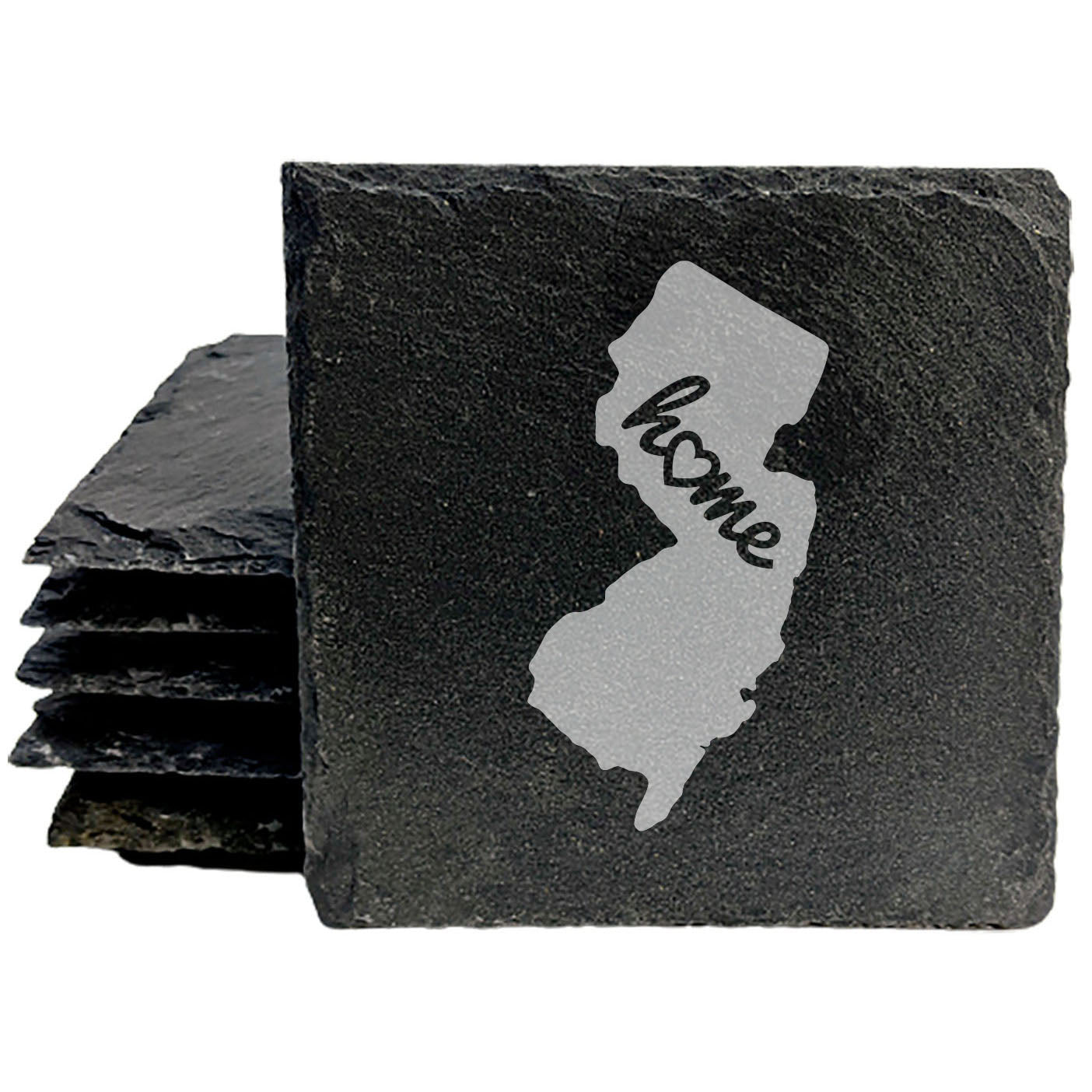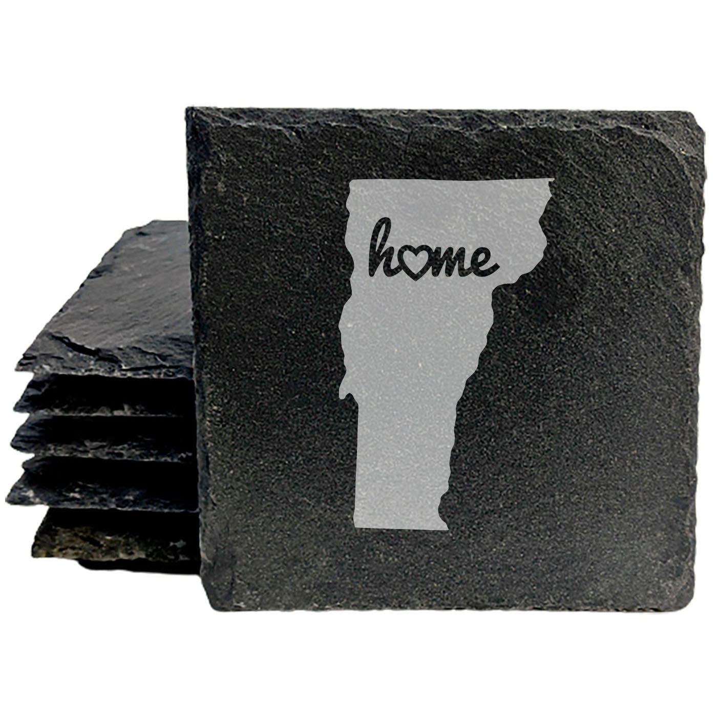Rustic Slate Coasters Set of 4 - Laser Etched 'Home' Design with Illinois State - Perfect Gift for Holidays, Birthdays, Housewarming - 4" Round/Square - Made in Oregon, USA - Natural Chipped Edge
