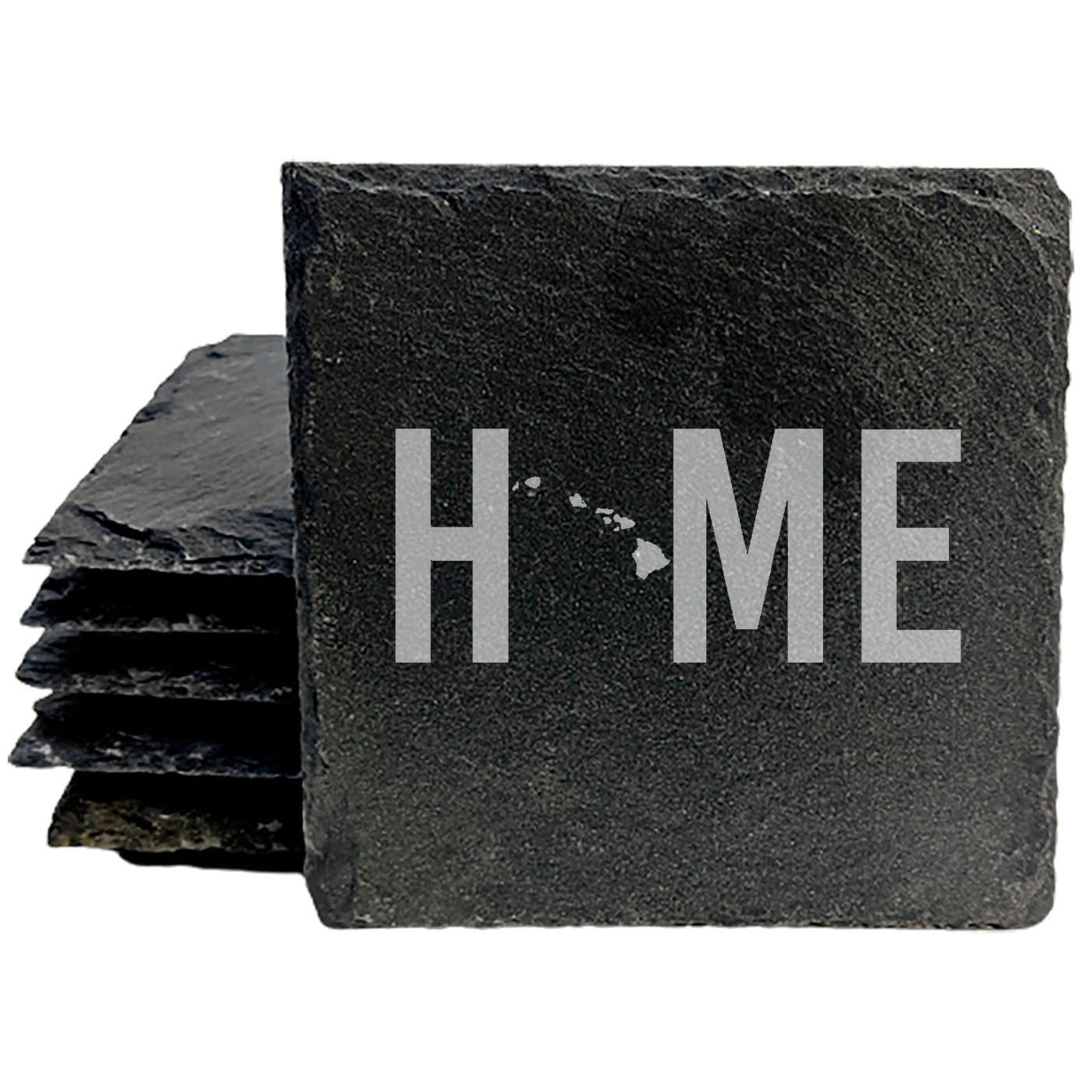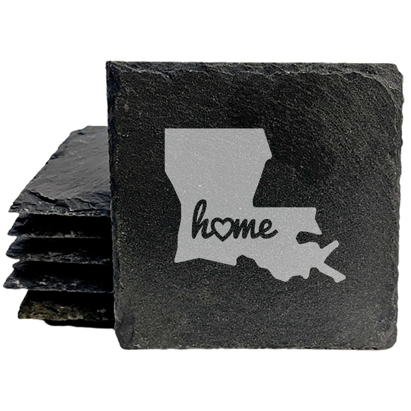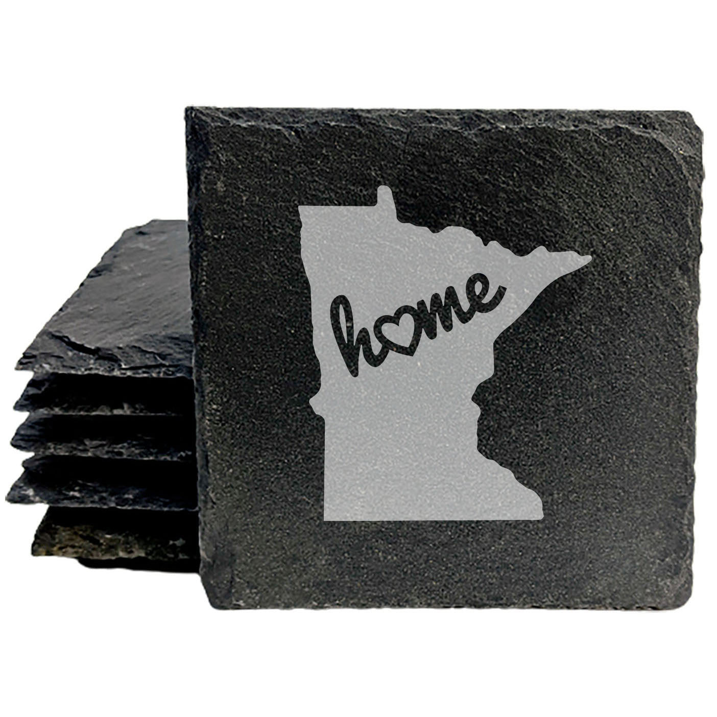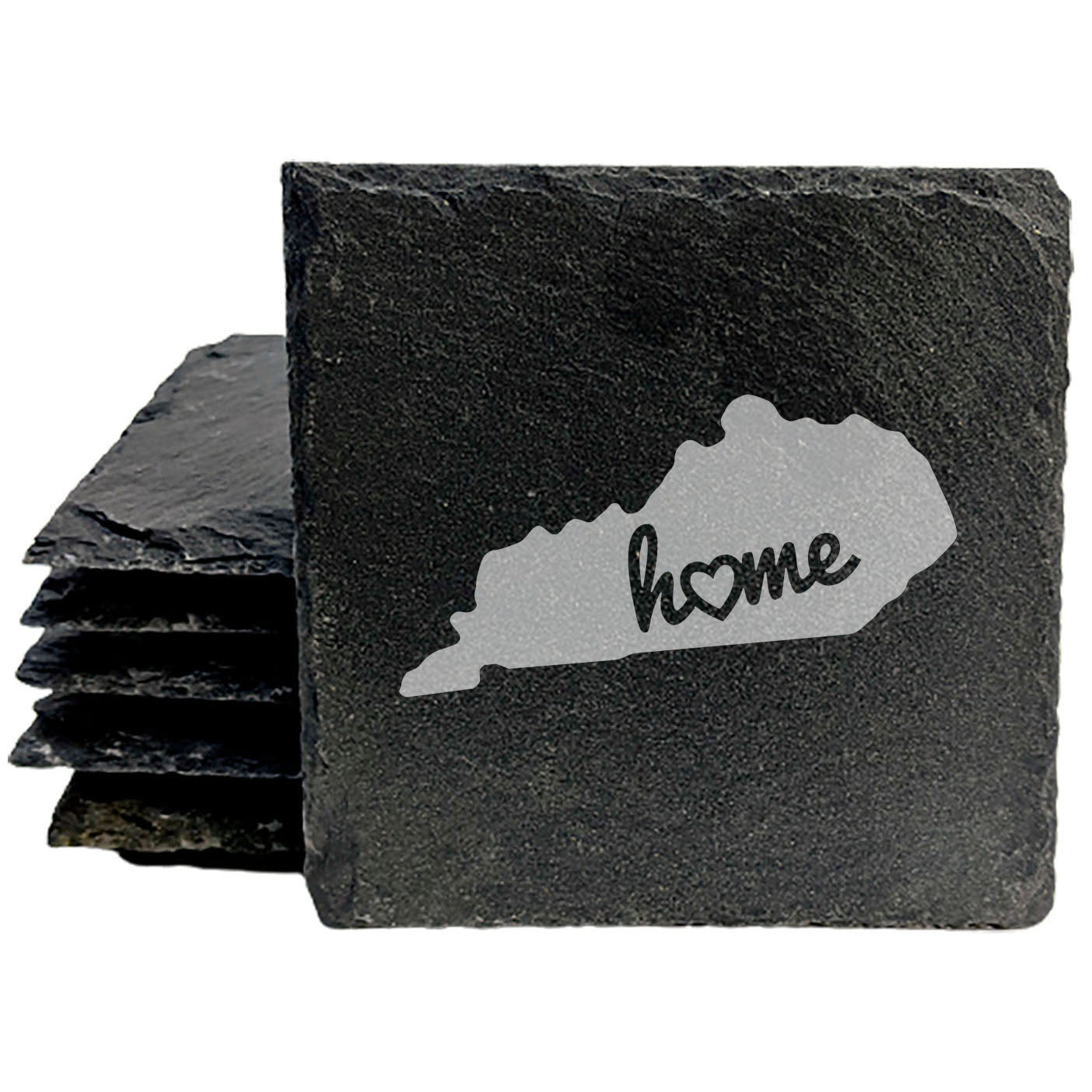 Rustic Slate Coasters Set of 4 - Laser Etched 'Home' Design with Illinois State - Perfect Gift for Holidays, Birthdays, Housewarming - 4" Round/Square - Made in Oregon, USA - Natural Chipped Edge