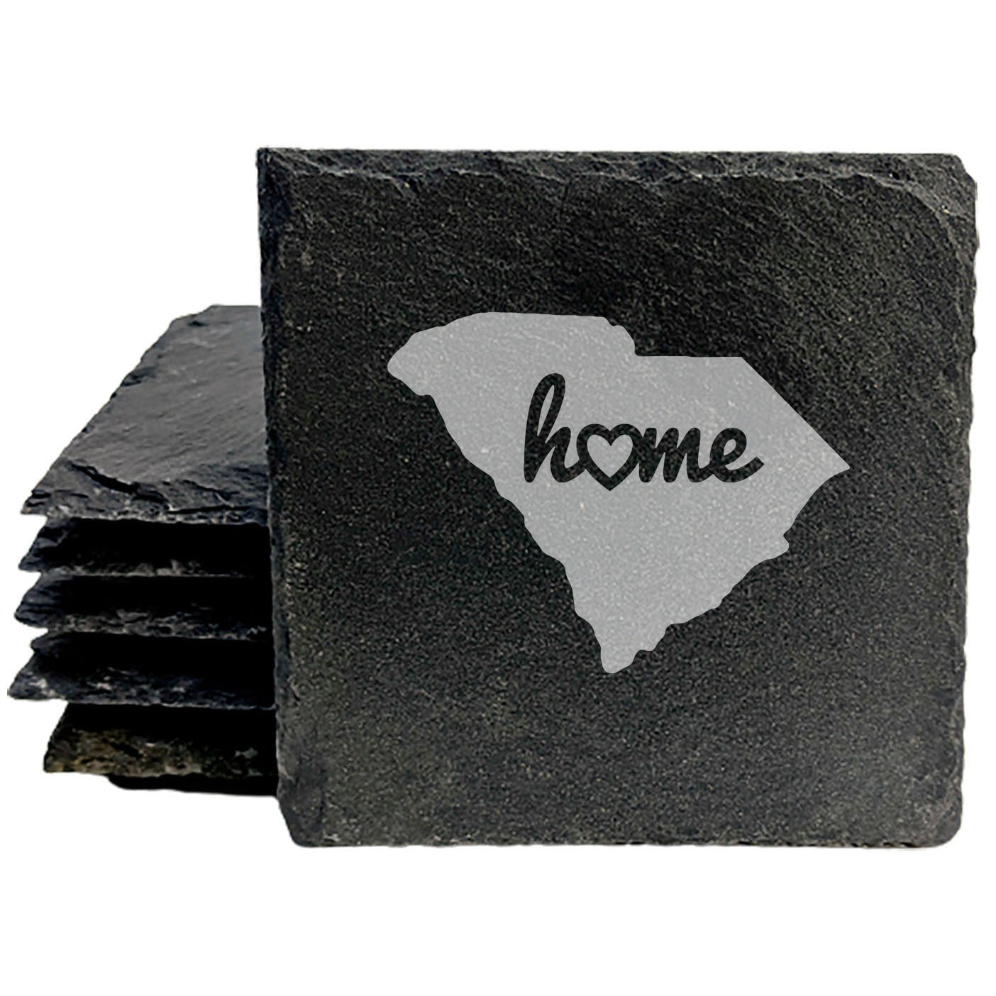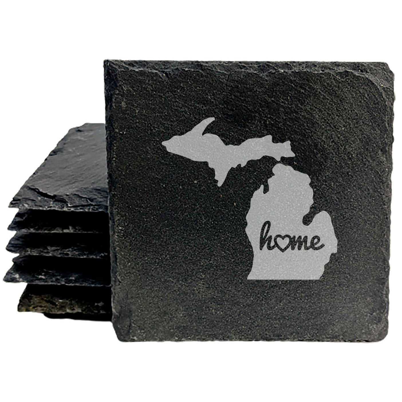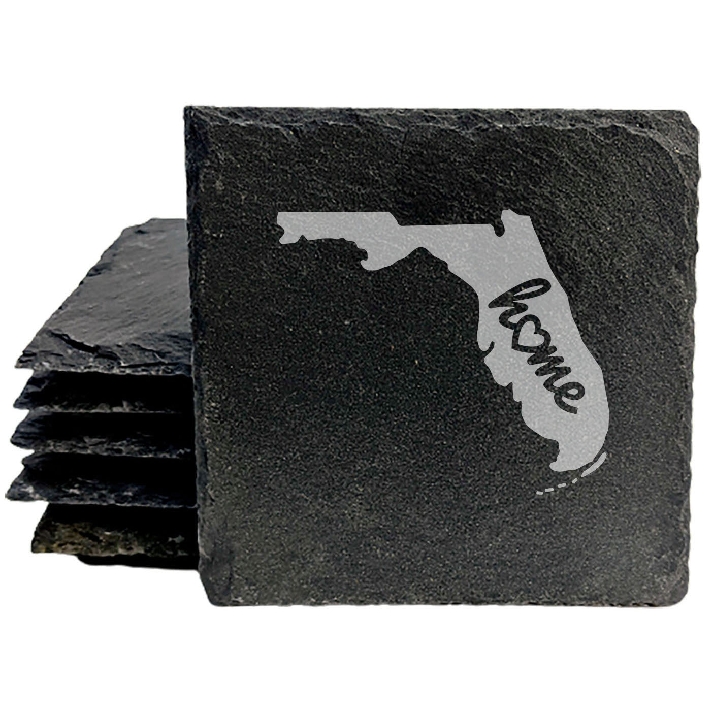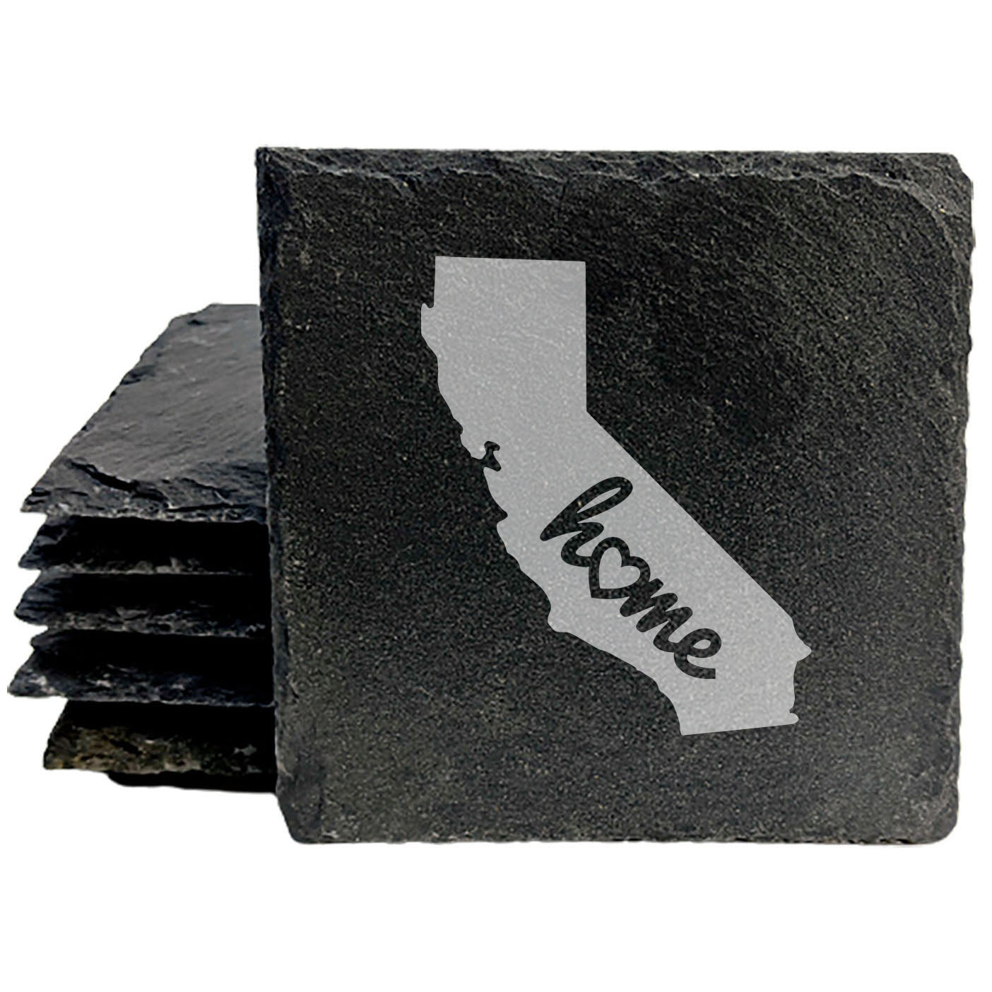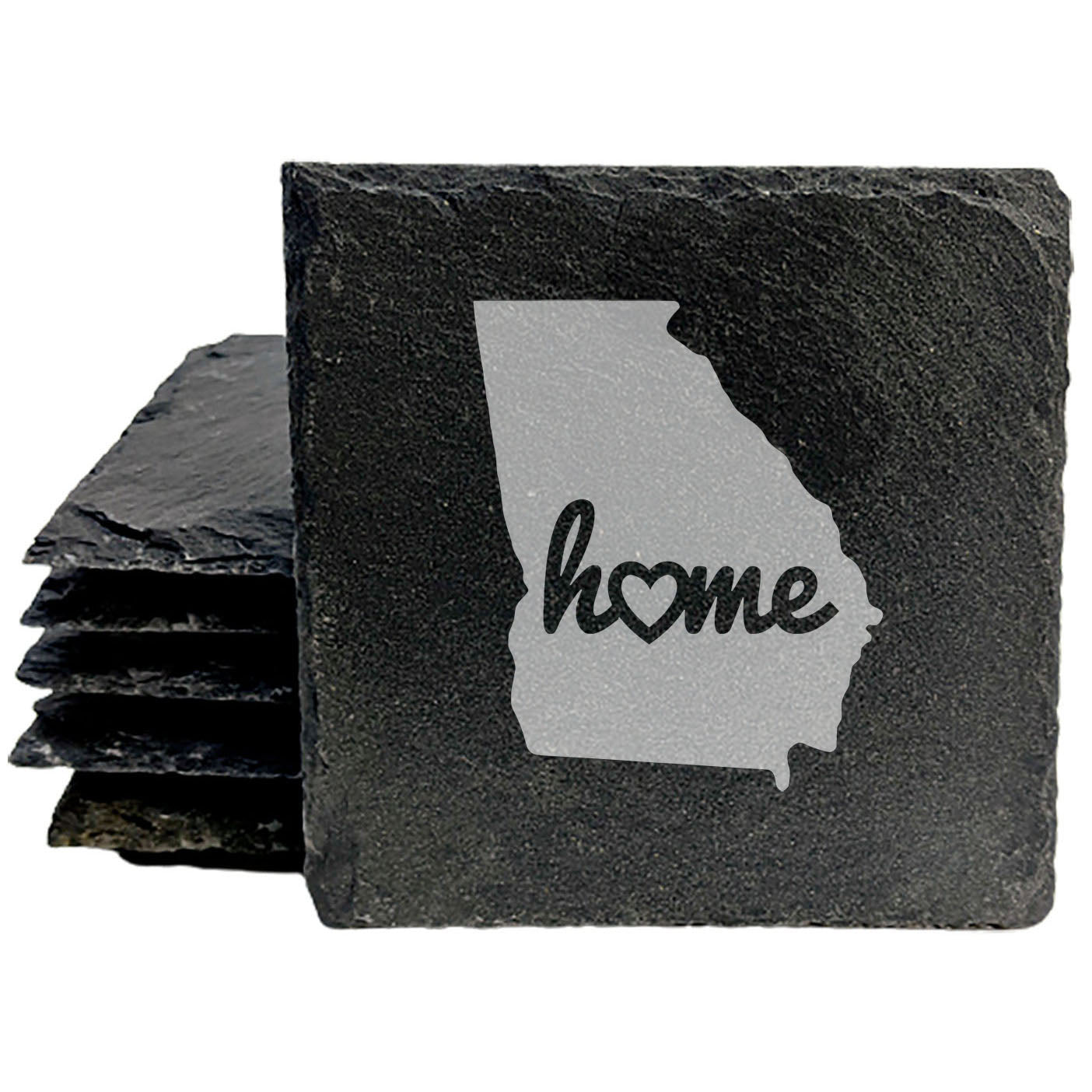 Rustic Slate Coasters Set of 4 - Laser Etched 'Home' Design with Illinois State - Perfect Gift for Holidays, Birthdays, Housewarming - 4" Round/Square - Made in Oregon, USA - Natural Chipped Edge