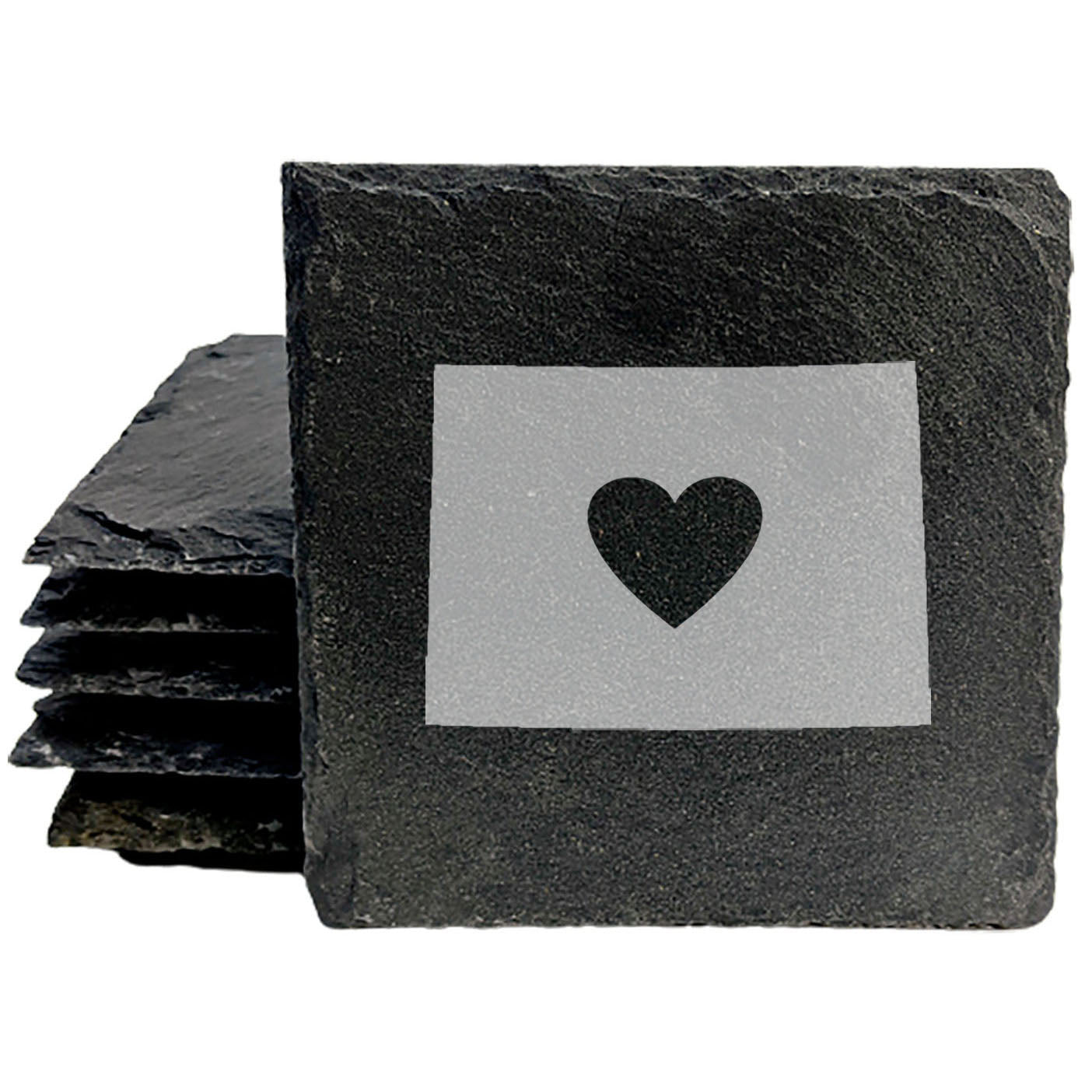 Rustic Slate Coasters Set of 4 - Idaho Heart Design, 4" Round, Natural Chipped Edge, Rubber Feet, - Perfect for Holidays, Birthdays, Housewarming - Made in Oregon, USA