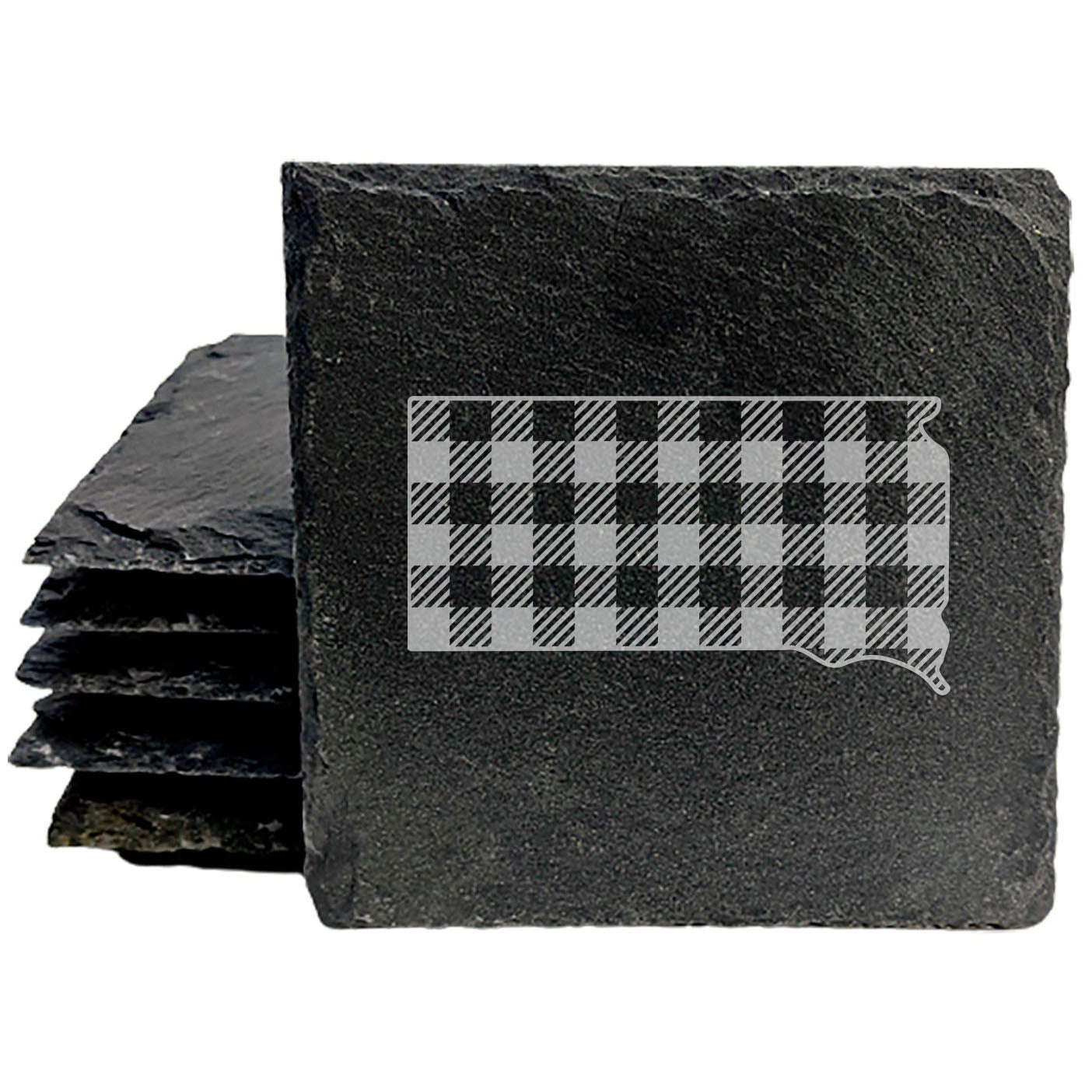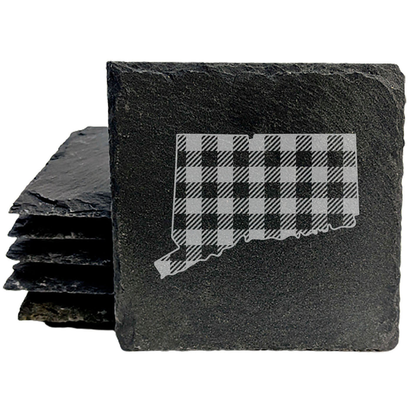 Rustic Slate Coasters Set of 4 - Idaho Plaid Design, 4" Round, Natural Chipped Edge, Rubber Feet, - Perfect for Holidays, Birthdays, Housewarming - Made in Oregon, USA