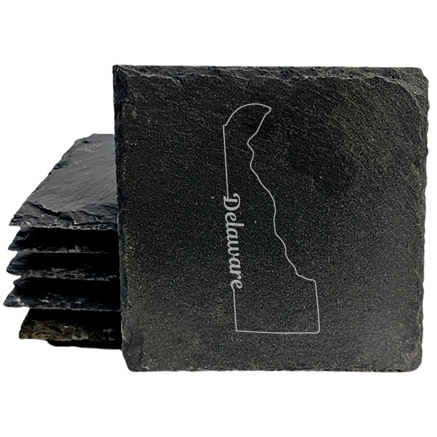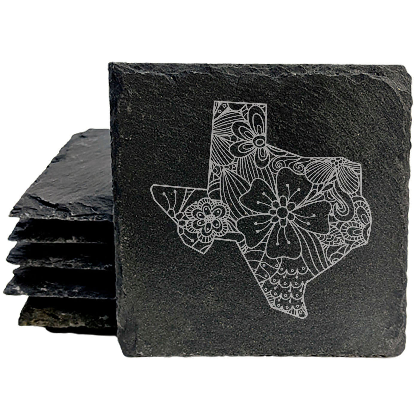 Rustic Slate Coasters Set of 4 - Illinois State Outline Design with Flower, 4" Round/Square, Natural Chipped Edge, Rubber Feet, - Perfect for Holidays, Birthdays, Housewarming!