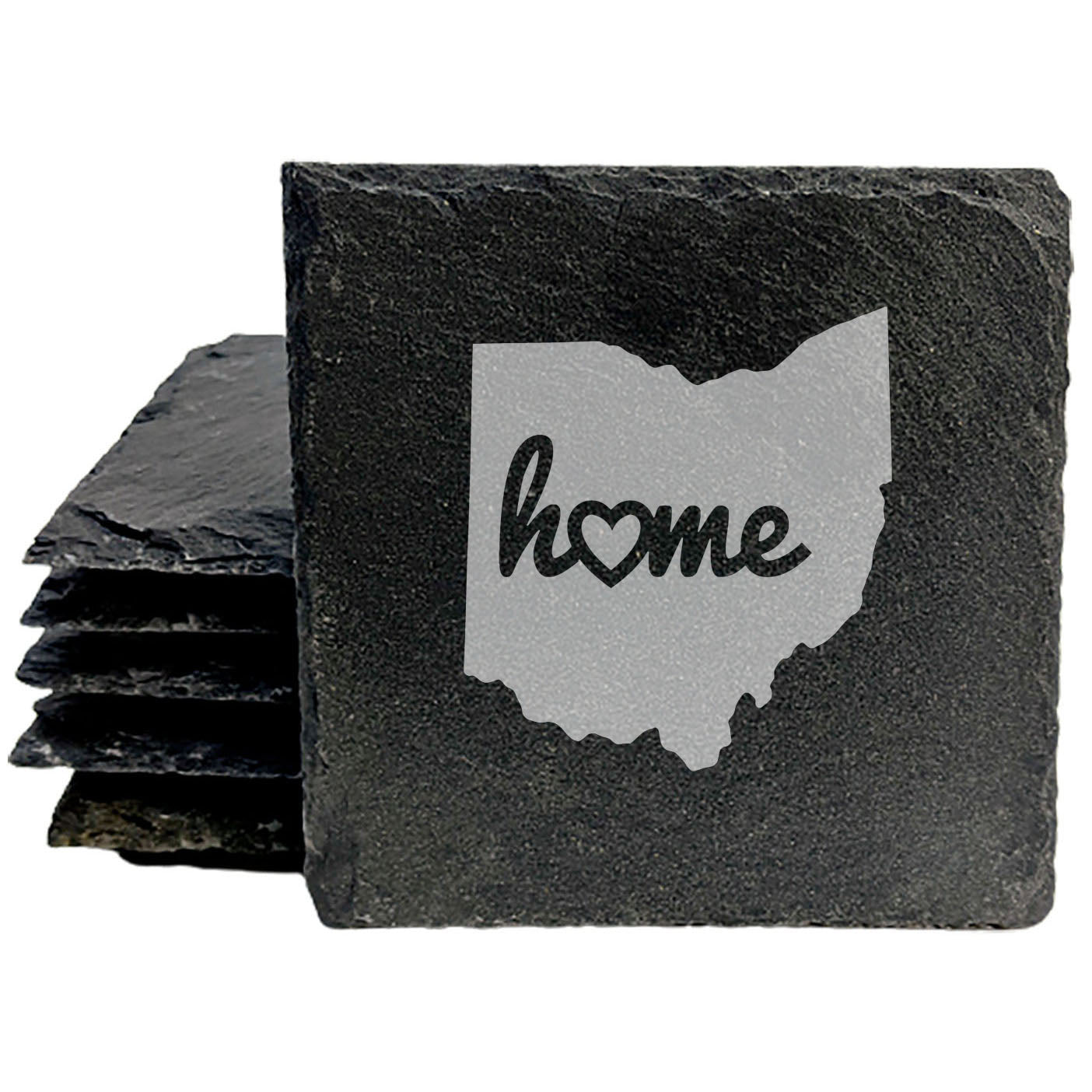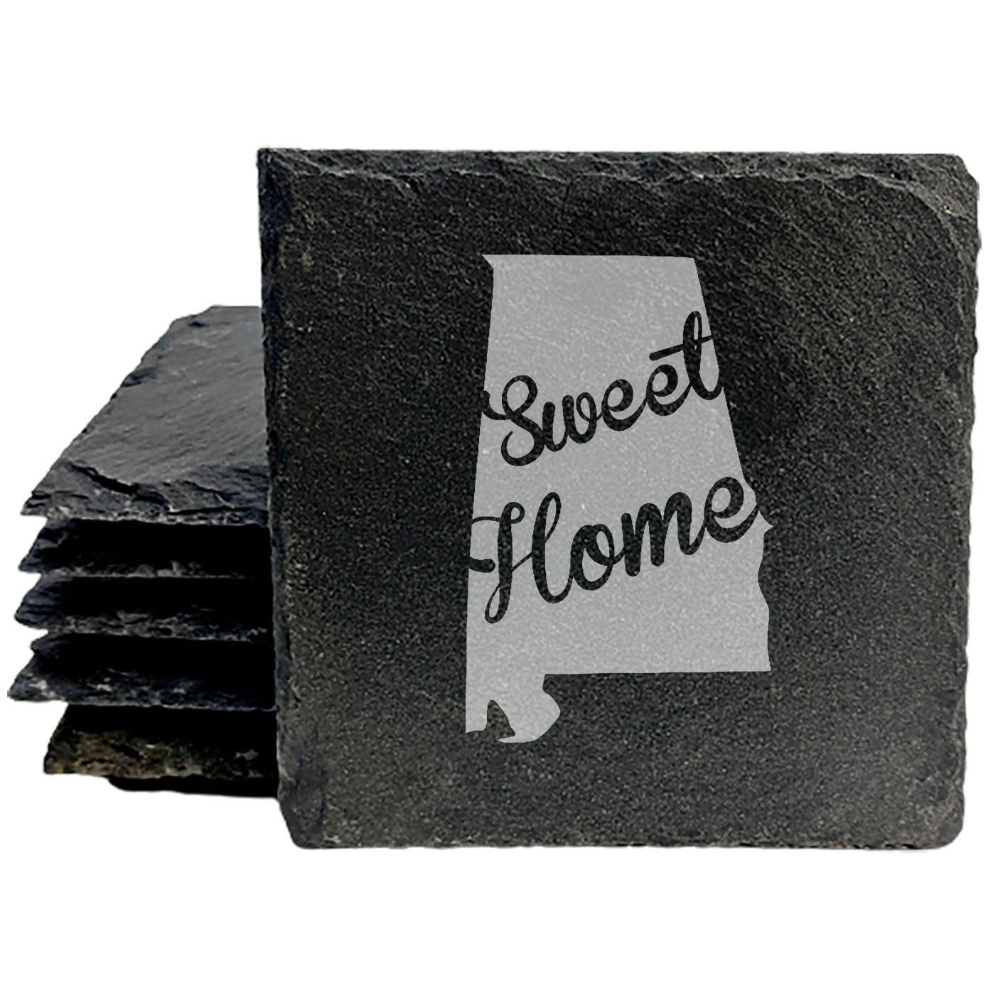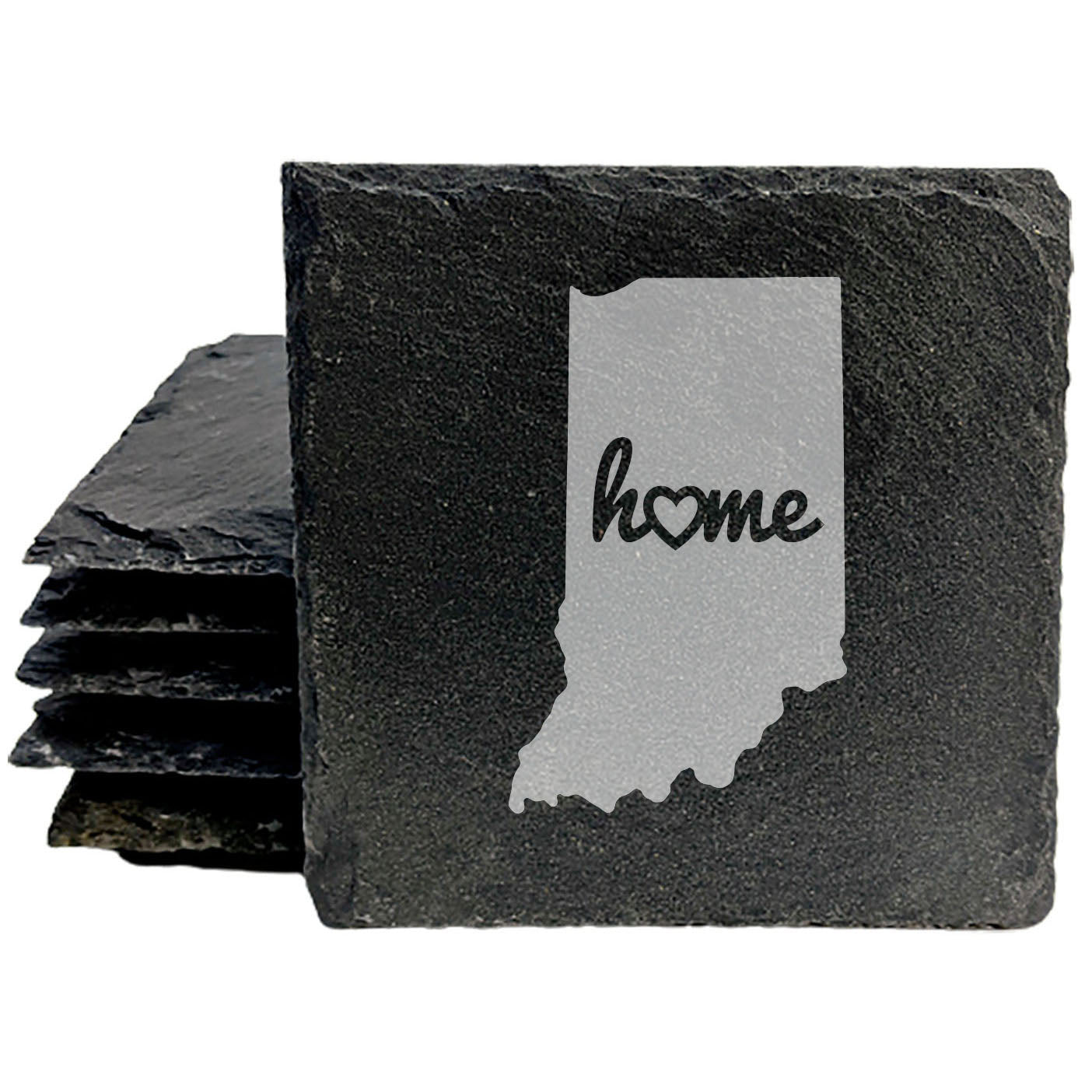 Rustic Slate Coasters Set of 4, 4" Round, Laser Etched 'HOME SWEET HOME' Illinois Design, Perfect Gift for Holidays, Birthdays, Housewarming, She-Shed, Man Cave, Made in Oregon, USA