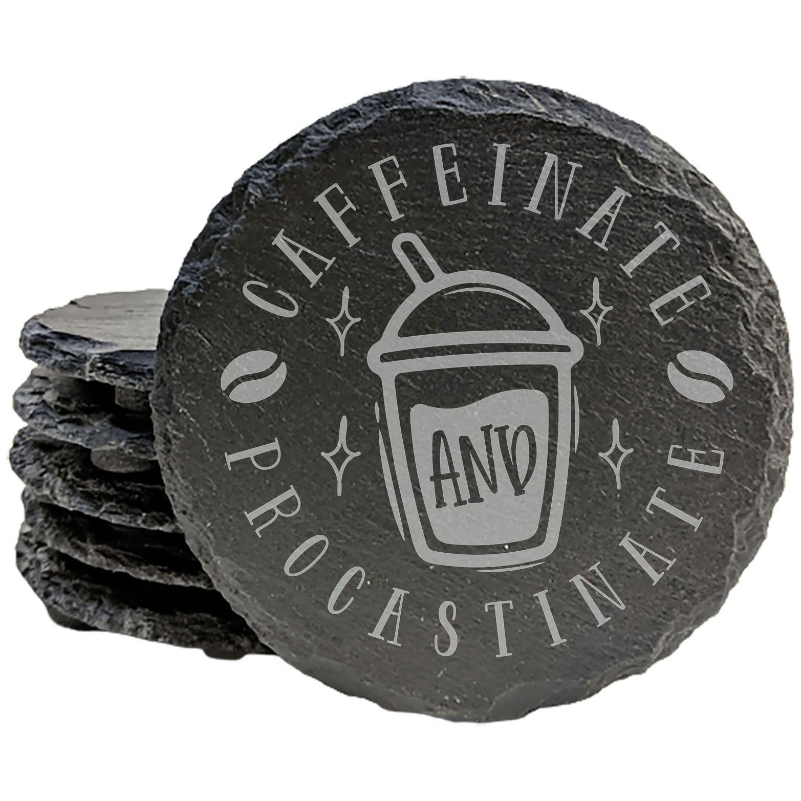 Fuel Your Procrastination in Style: "Caffeinate and Procrastinate" Laser-Etched Slate Coasters
