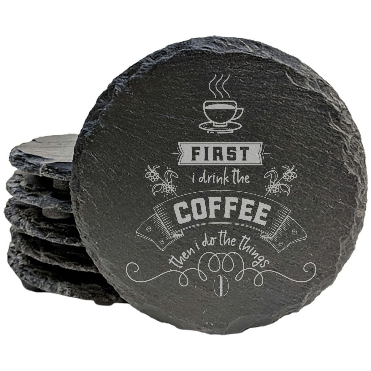 Rustic Slate Coasters: "First I Drink Coffee, Then I Do the Things"