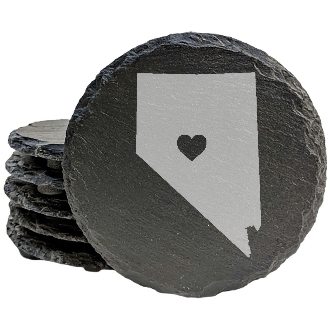 Elevate your home decor with our premium slate coasters, handcrafted in Oregon, USA by our small family business. Each coaster in this set of 4 features a beautifully laser-etched design of Nevada filled with an eye-catching plaid pattern. These 4-inch round coasters are perfect for protecting your furniture while adding a touch of rustic charm to any room.