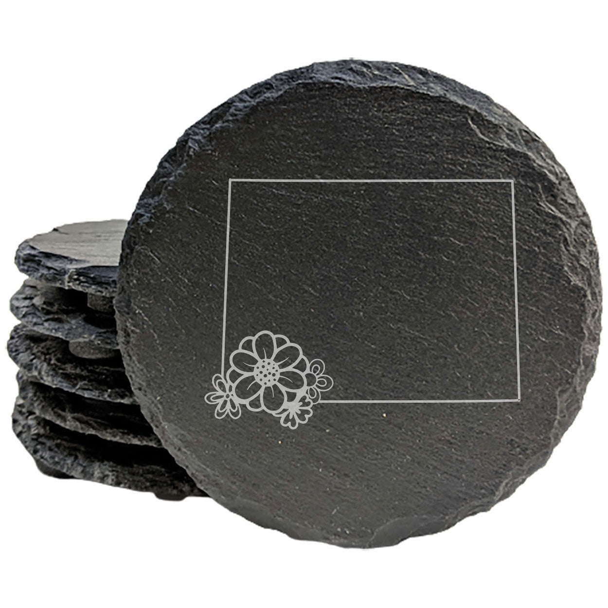 Elevate your home decor with our handcrafted Wyoming State Slate Coasters, proudly made in Oregon, USA. Each set includes 4 premium natural slate coasters featuring a beautifully laser-etched design of Wyoming's outline adorned with an elegant flower detail in the upper right corner. Perfect for protecting your furniture while showcasing your love for the Equality State.