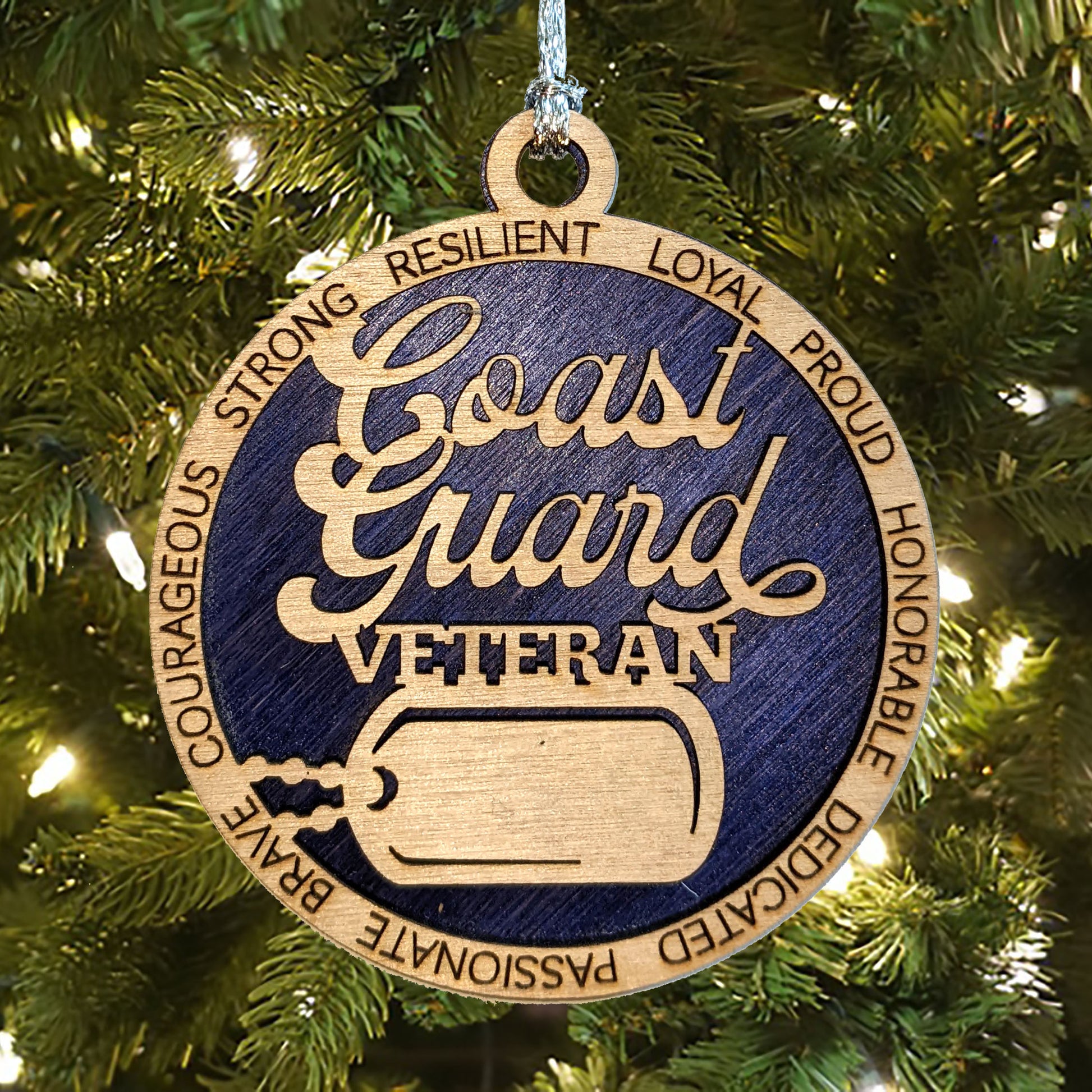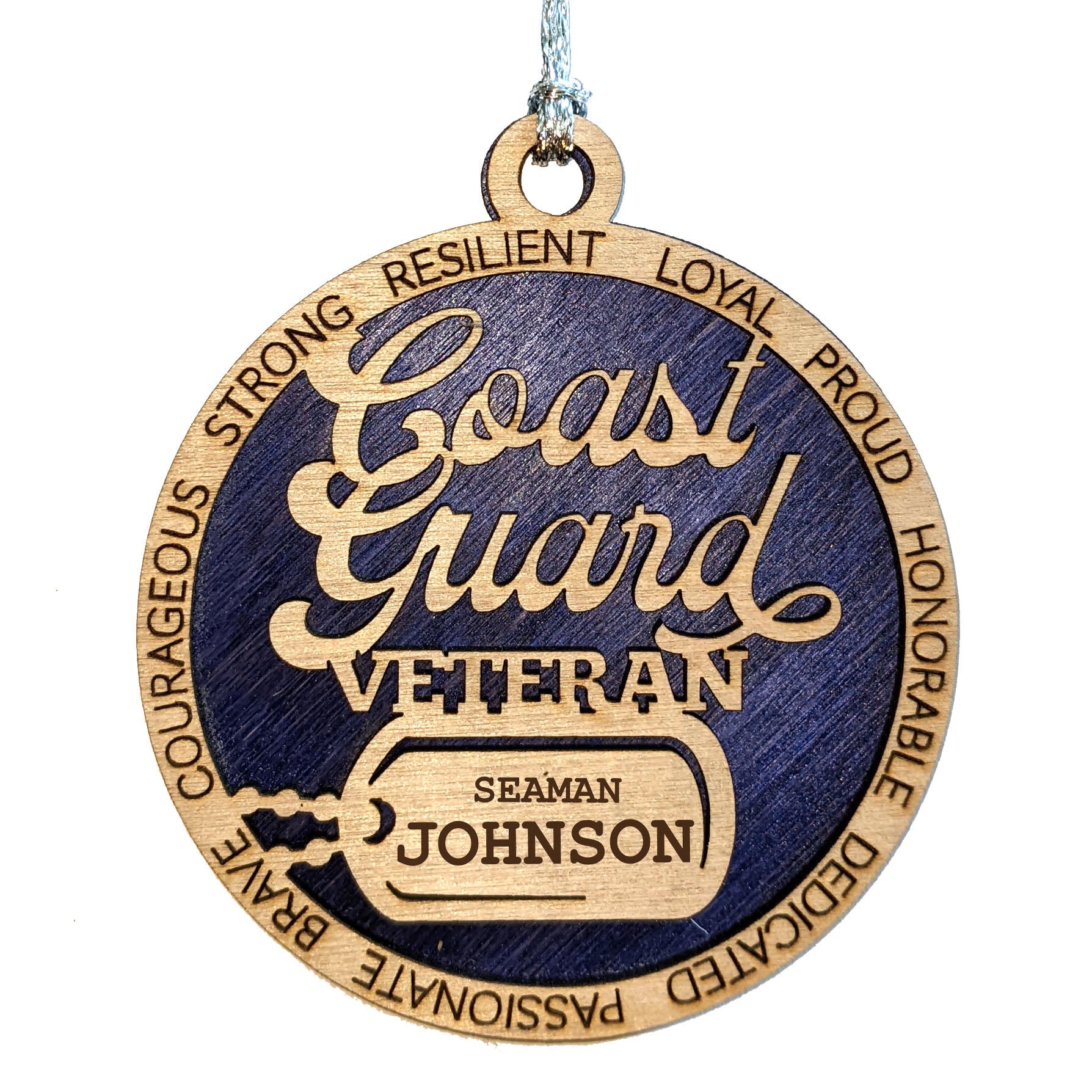 Laser Cut Coast Guard Veteran Ornament - Personalized 3" Wooden Christmas Decor - Handmade in USA