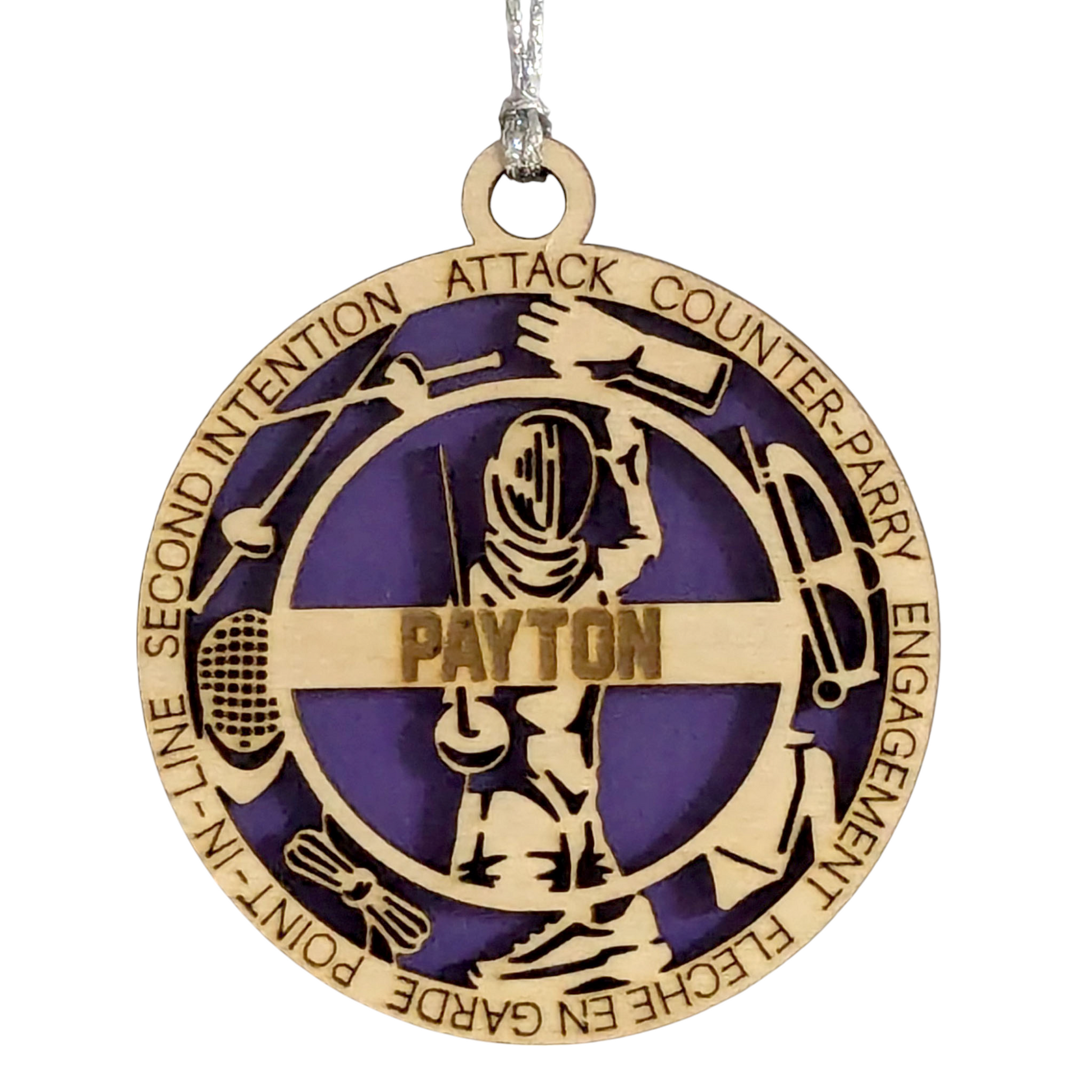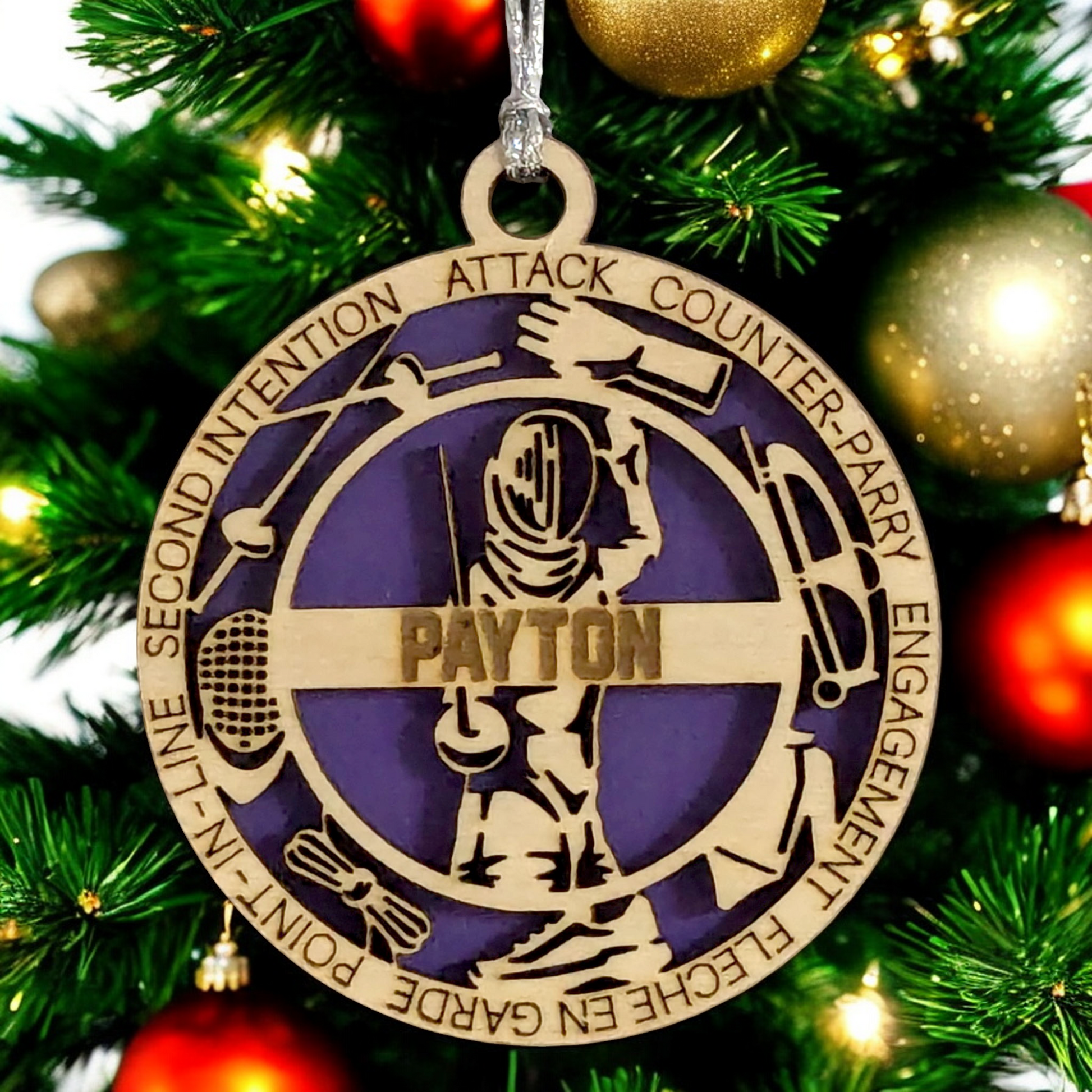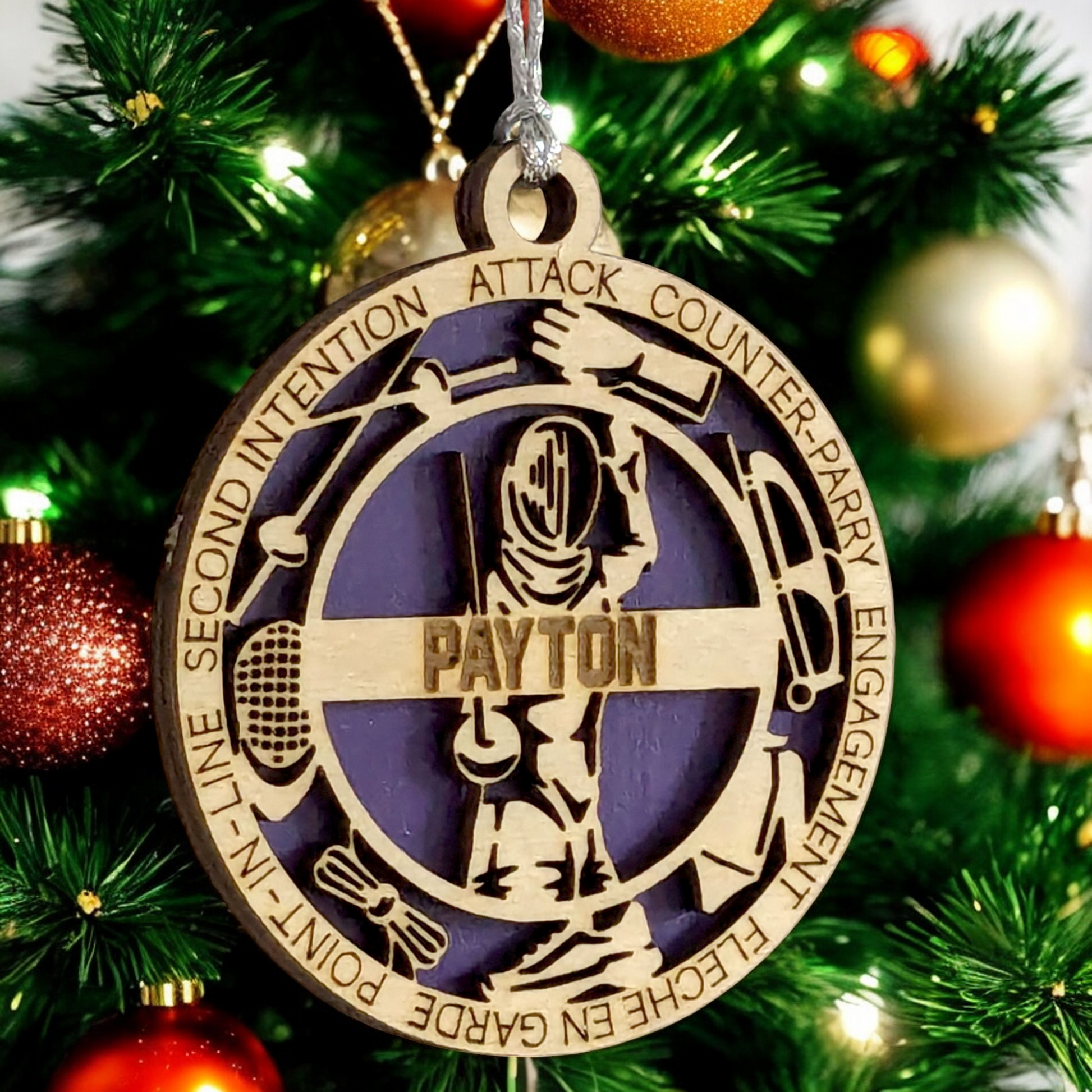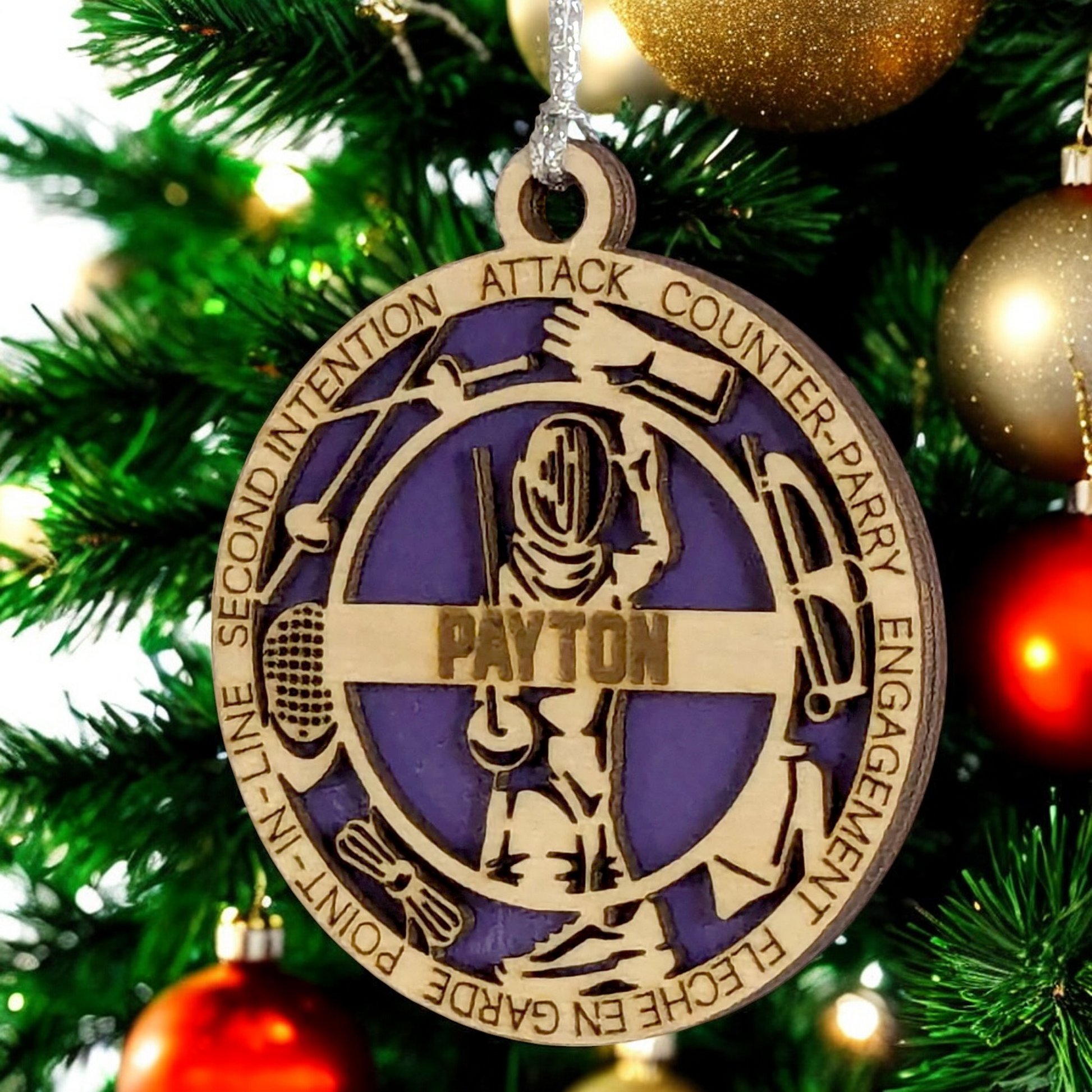 3" Laser Cut Handcrafted Wooden Personalized Female Fencing Christmas Ornament - Customizable Holiday Decor for Female Fencers - Unique Fencing Sport Gift and Keepsake for Women Athletes