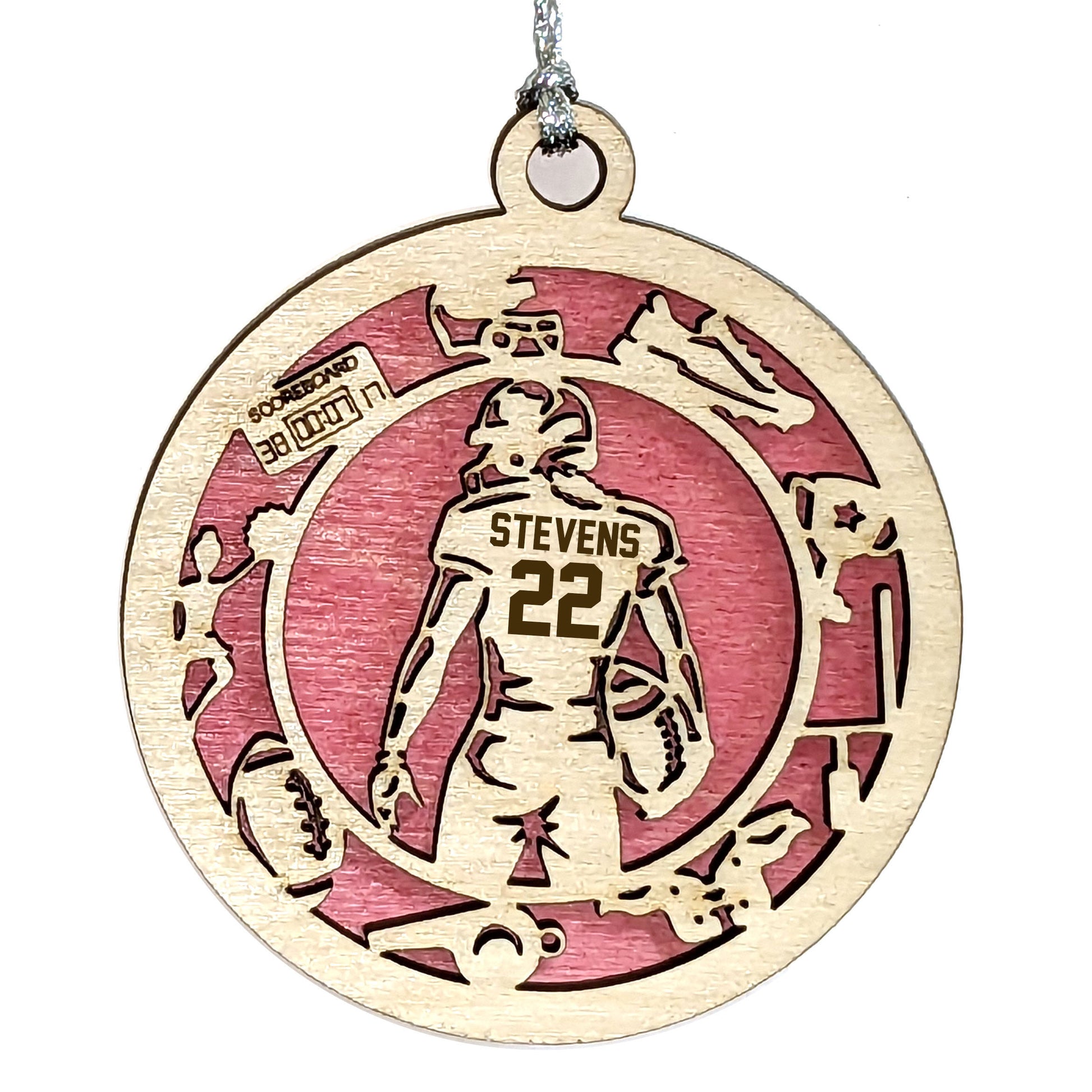 Female Football laser cut personalized wood ornament