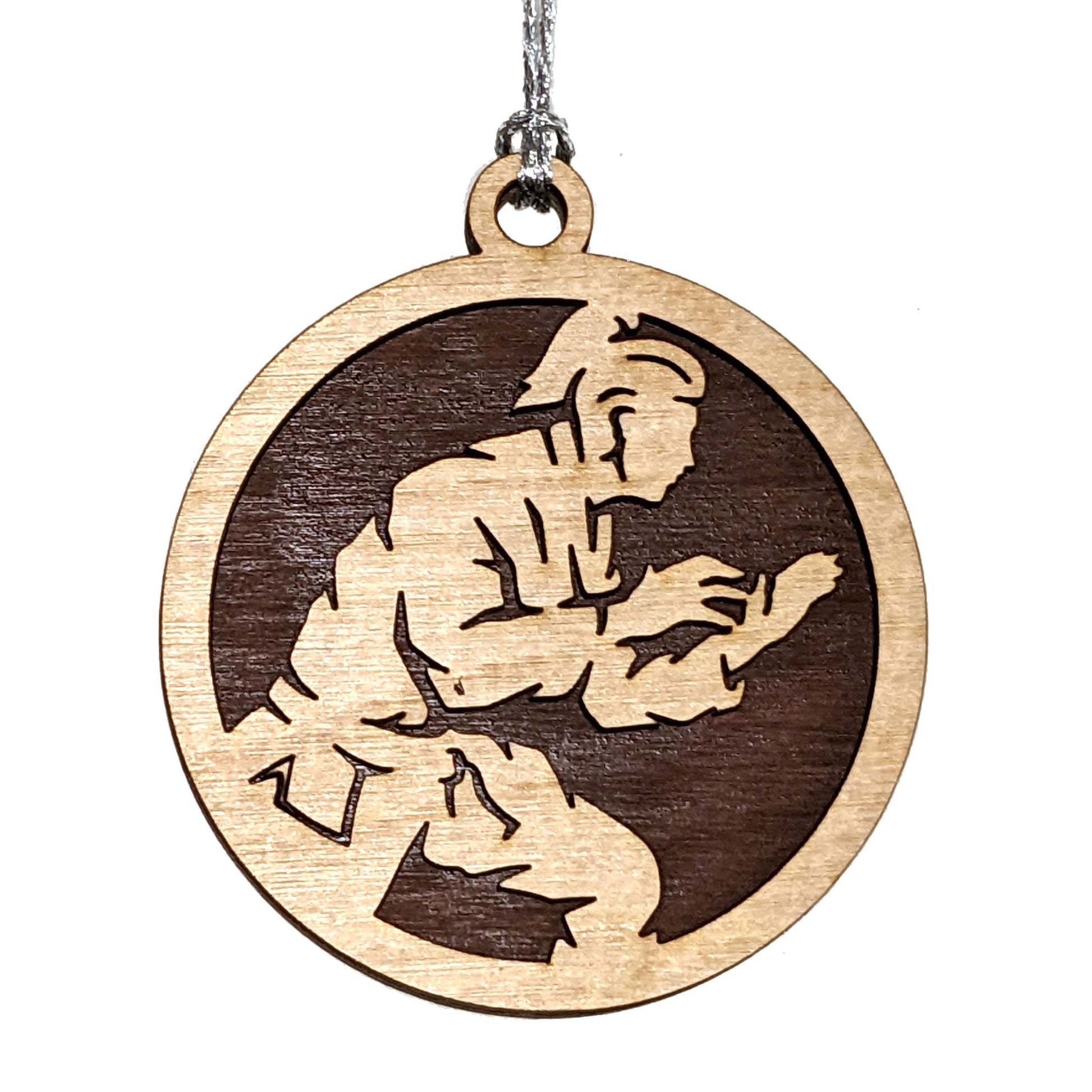 - Wooden ornament is approximately 3 inches in diameter and 1/4 inch thick.