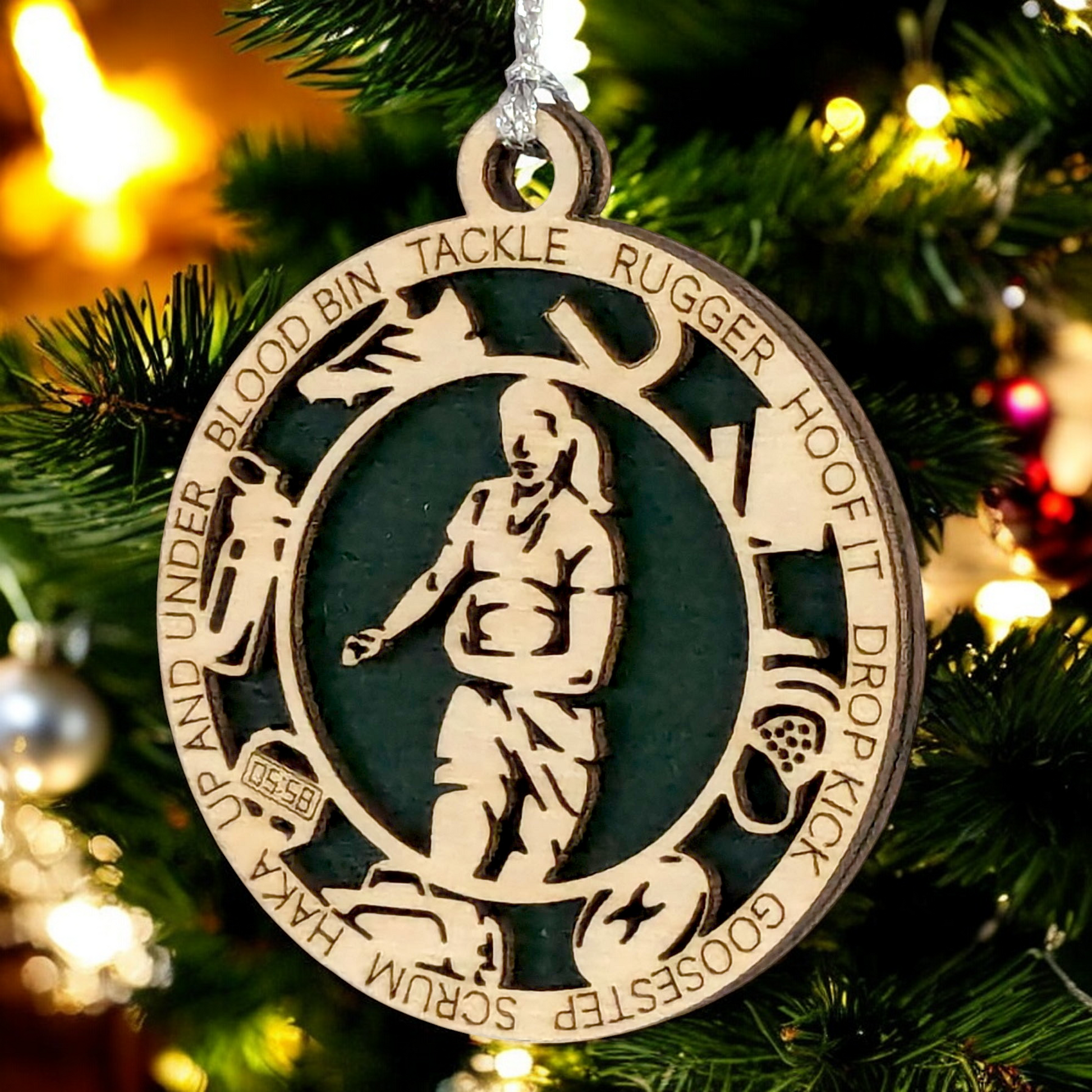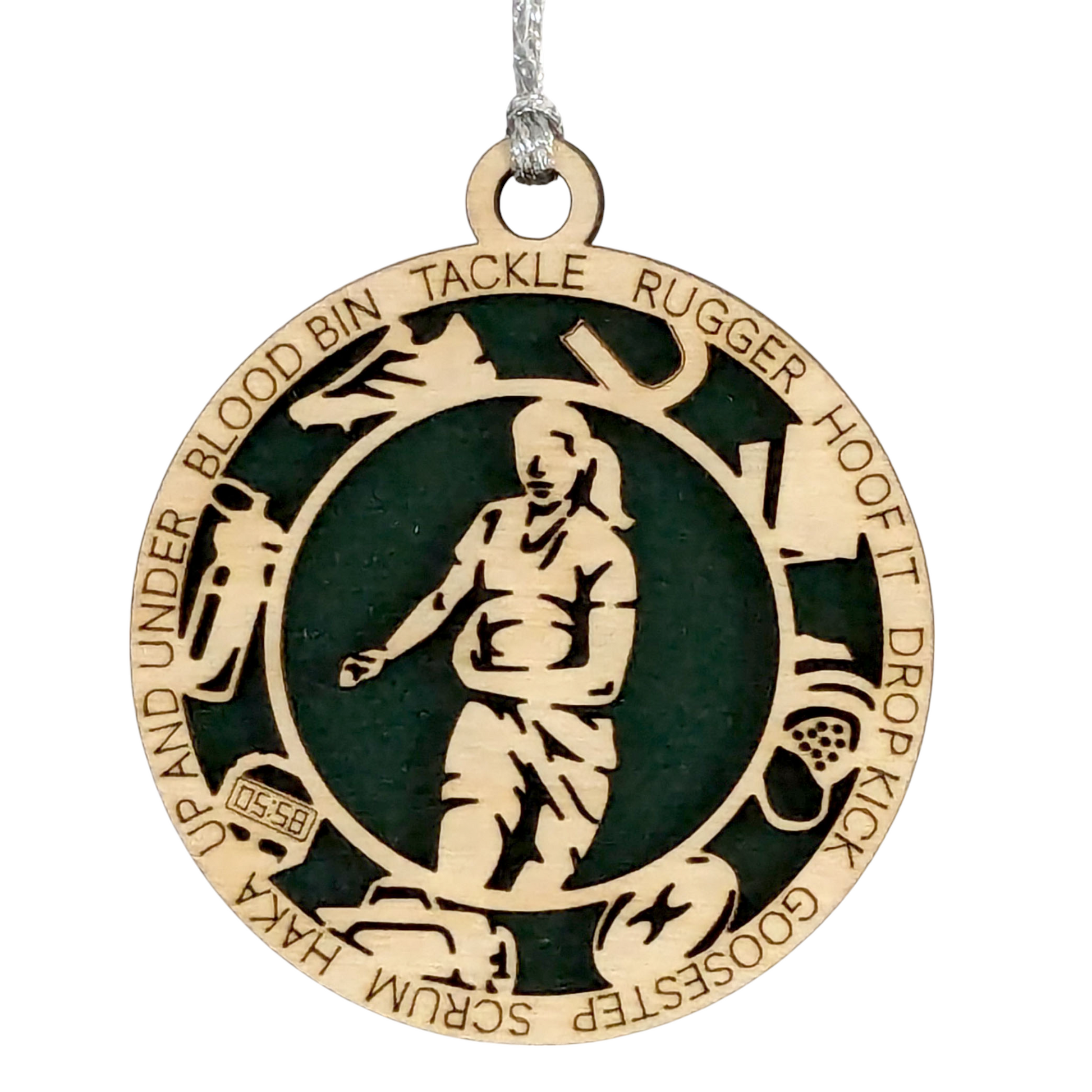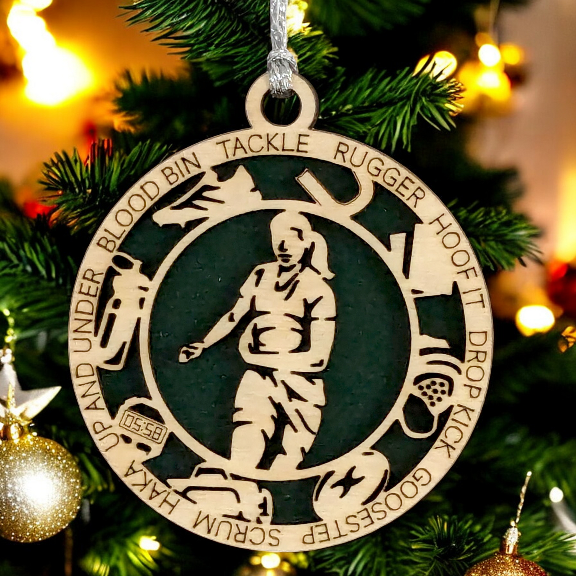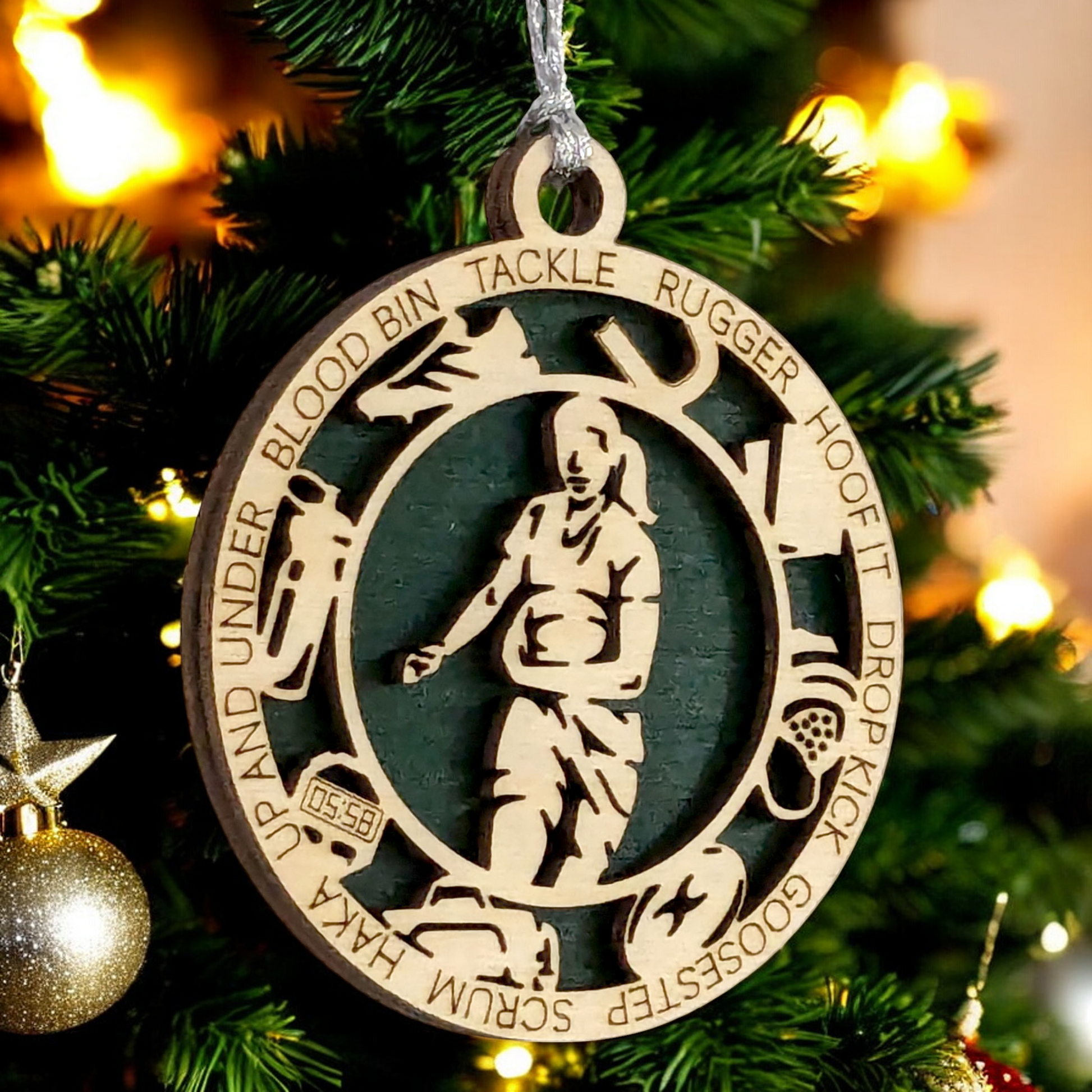 3" Handcrafted Wooden Personalized Female Rugby Christmas Ornament - Custom Rugby Player Holiday Decor