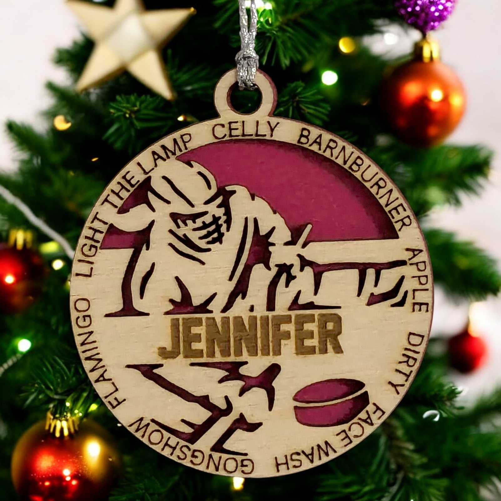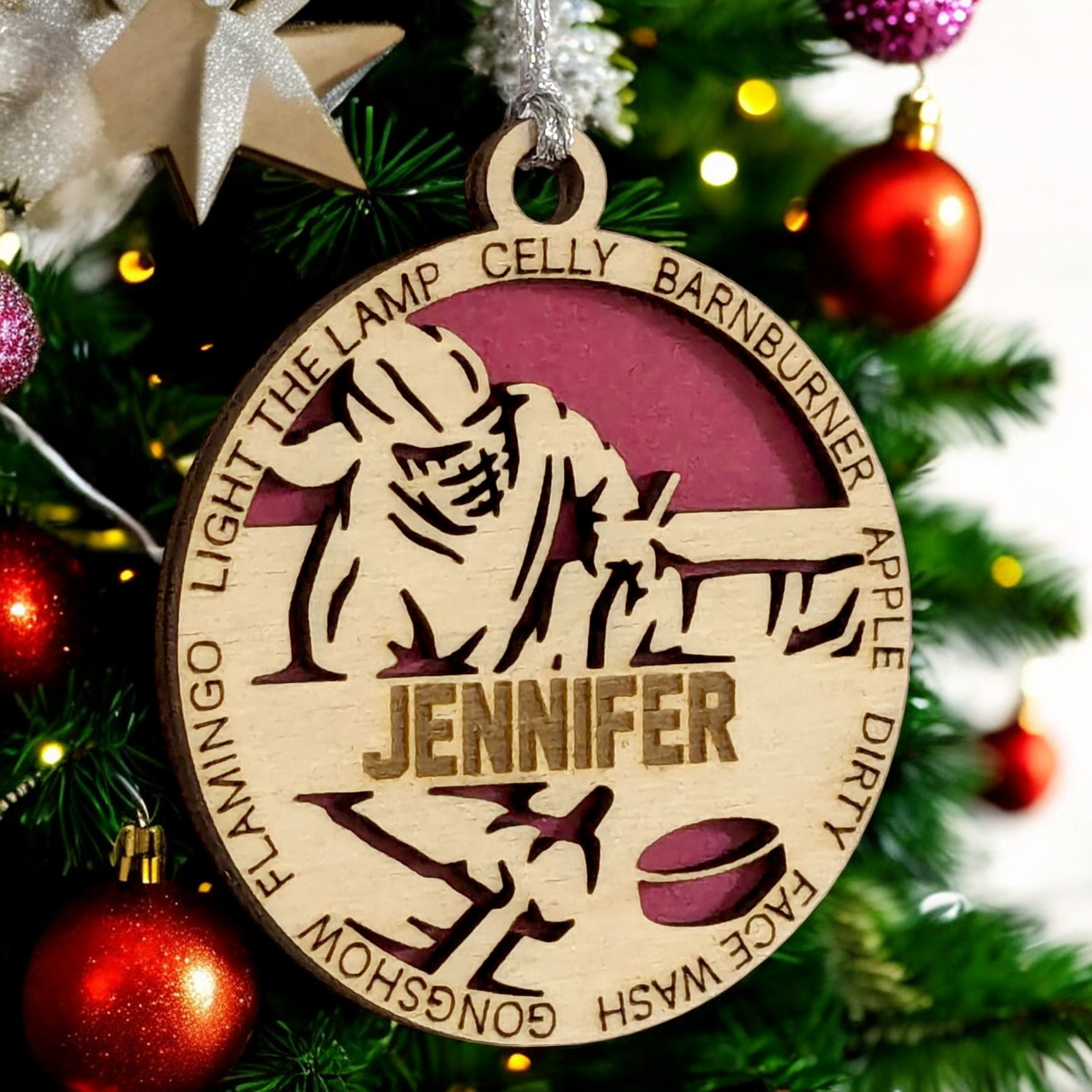 Personalized 3" Handcrafted Wooden Female Sledge Hockey Christmas Ornament - Laser Cut, Customizable Winter Sport Holiday Tree Decoration - Unique Gift for Female Athletes and Hockey Enthusiasts