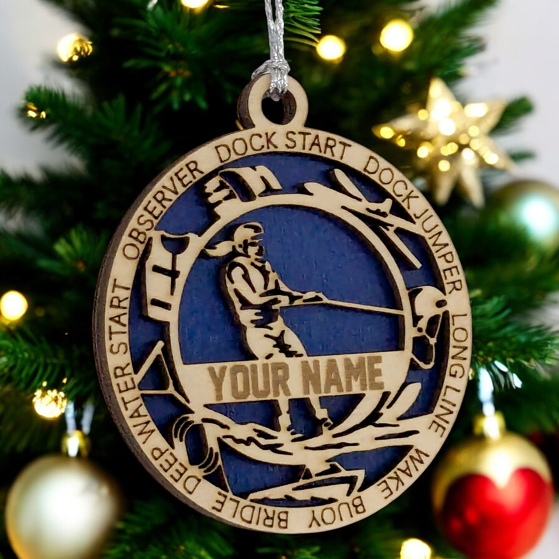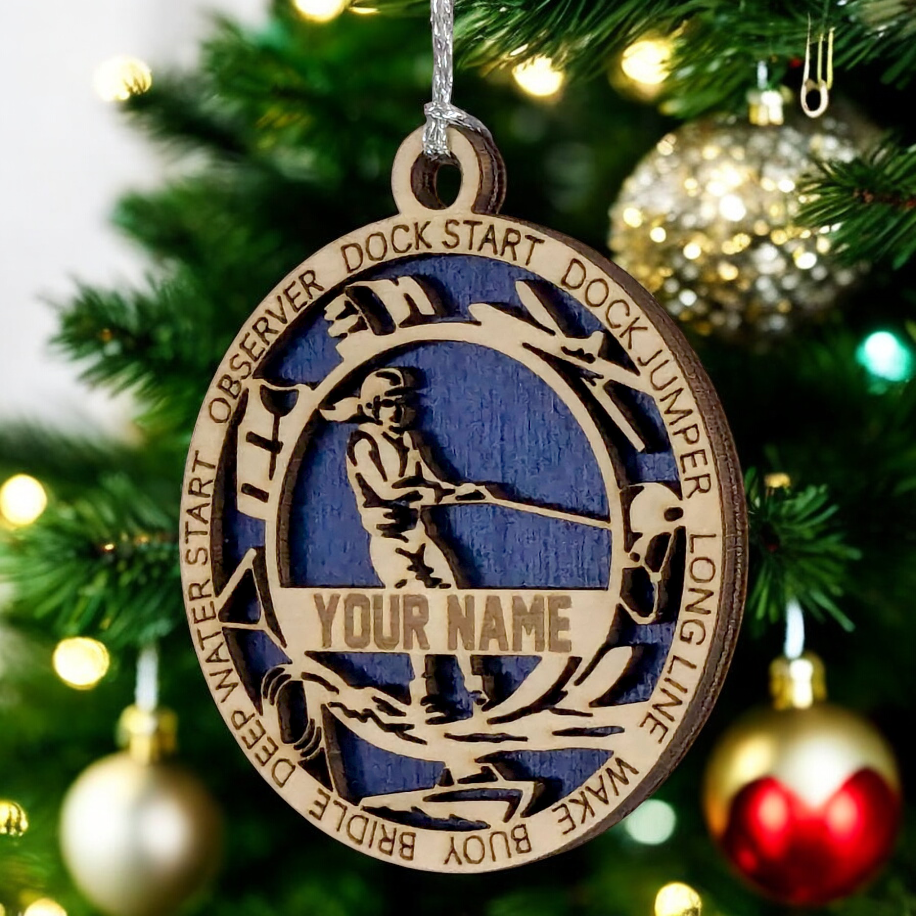 3" Personalized Female Water Skiing Christmas Ornament - Handcrafted Wooden Holiday Decor