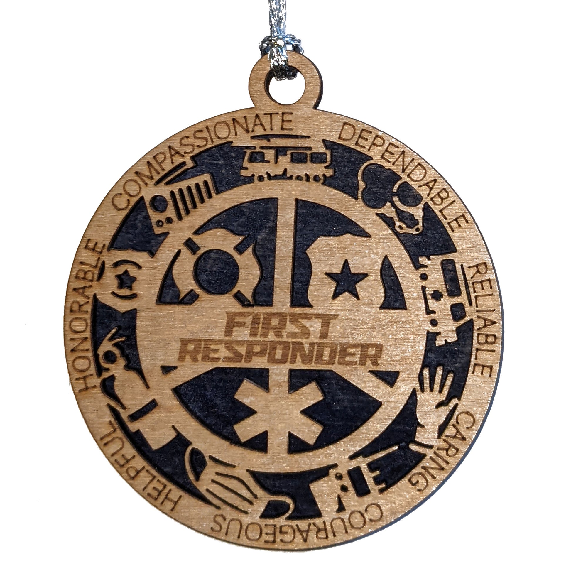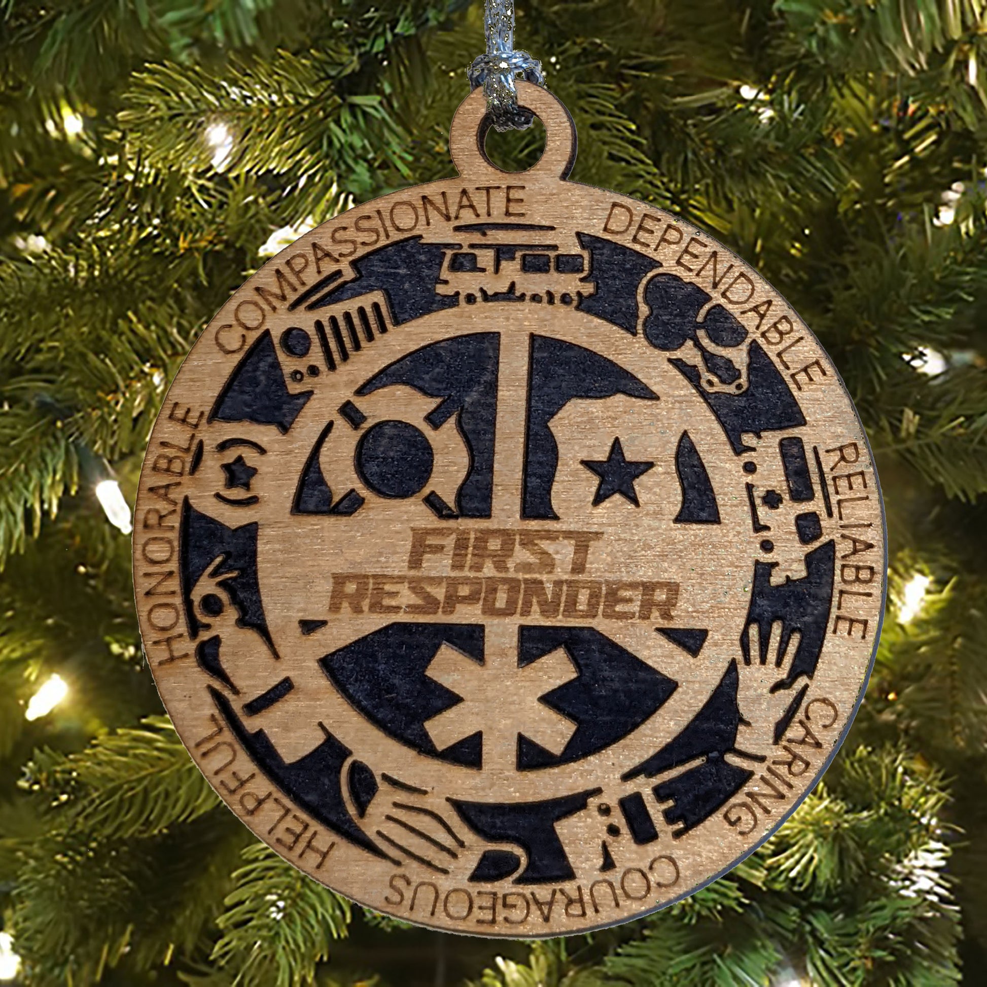 3" Handcrafted Wooden First Responder Christmas Ornament - Customizable with Solid Background - Heartfelt Holiday Tribute to Heroes