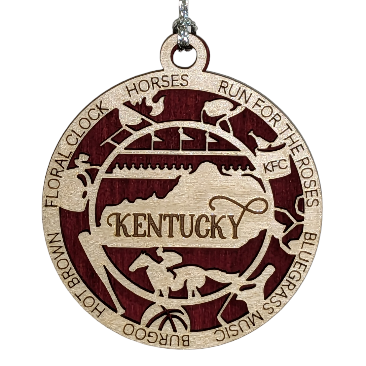 Kentucky State Pride 3D Wood Laser Cut Ornament: Featuring Iconic Kentucky Symbols and Custom Background Colors