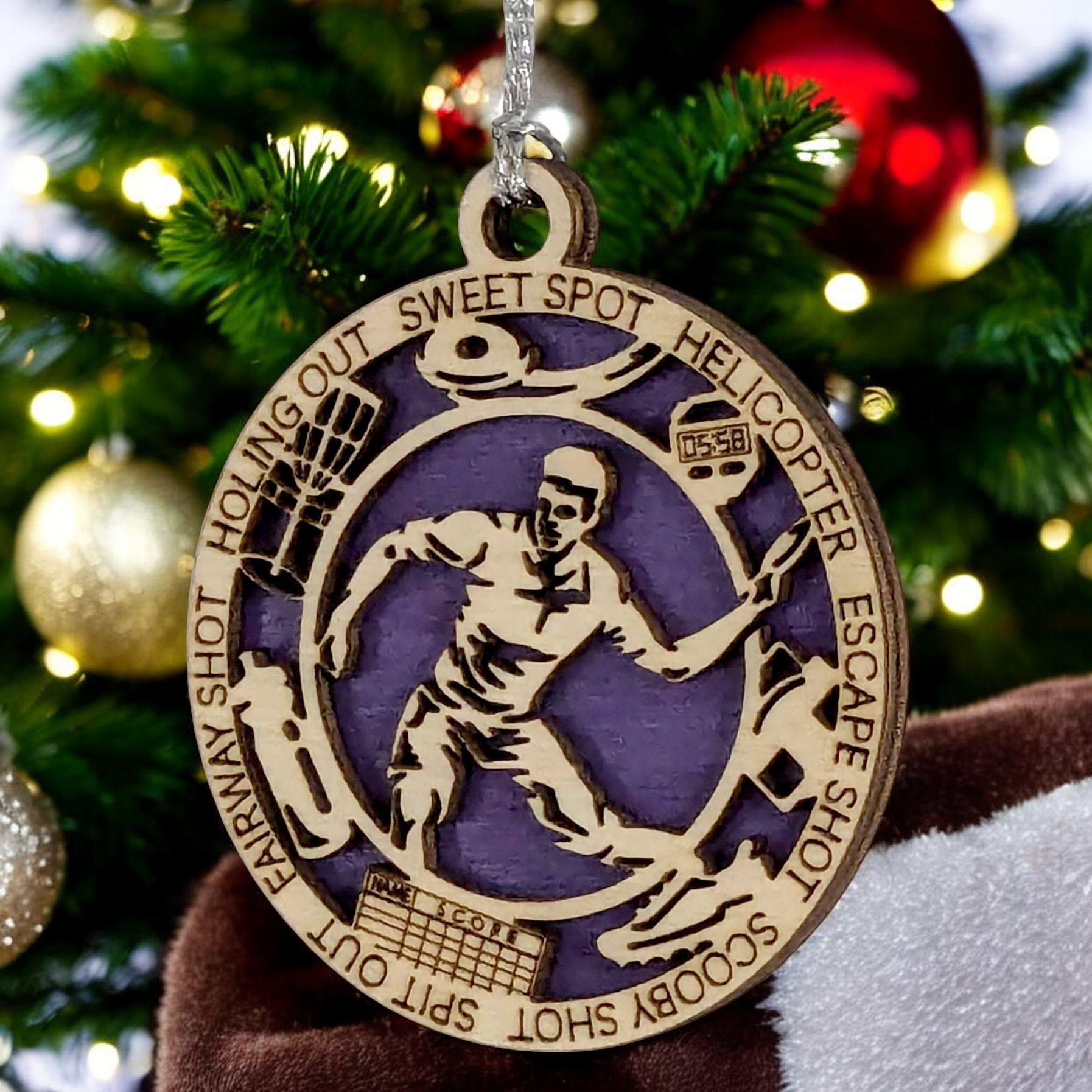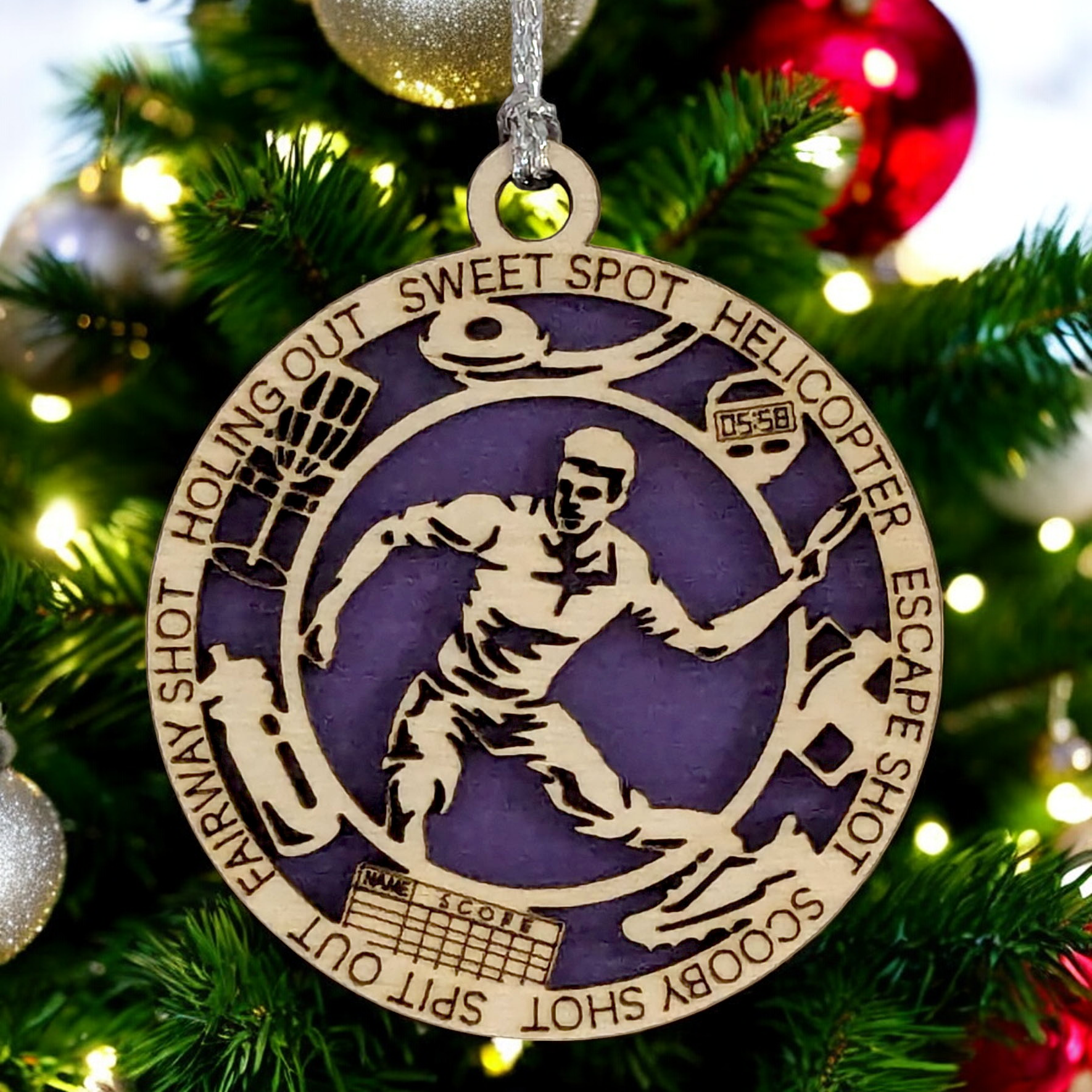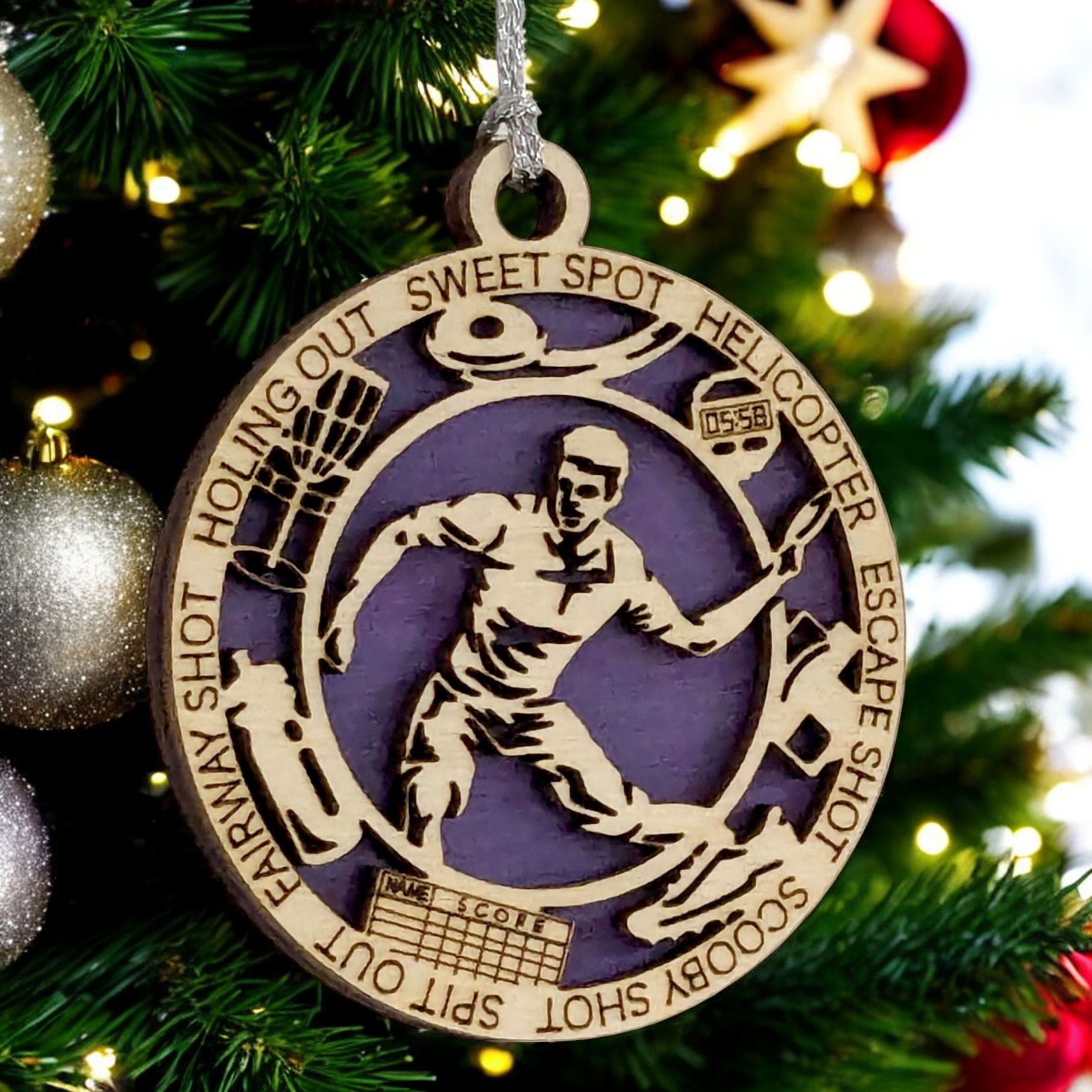3" Handcrafted Wooden Personalized Left-Handed Male Disc Golf Christmas Ornament - Custom Disc Golfer Holiday Decor