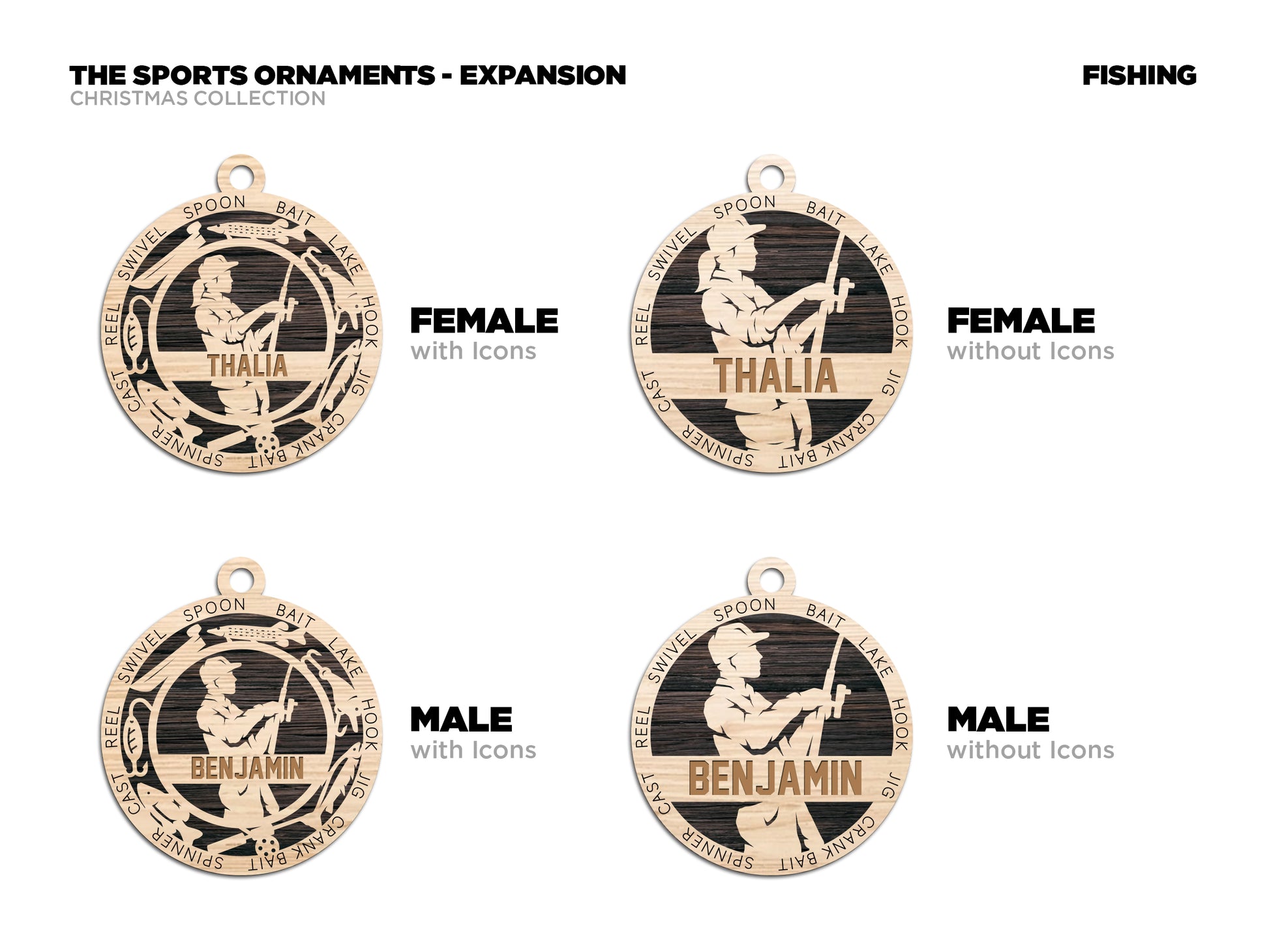 Male Fishing laser cut personalized wood ornament