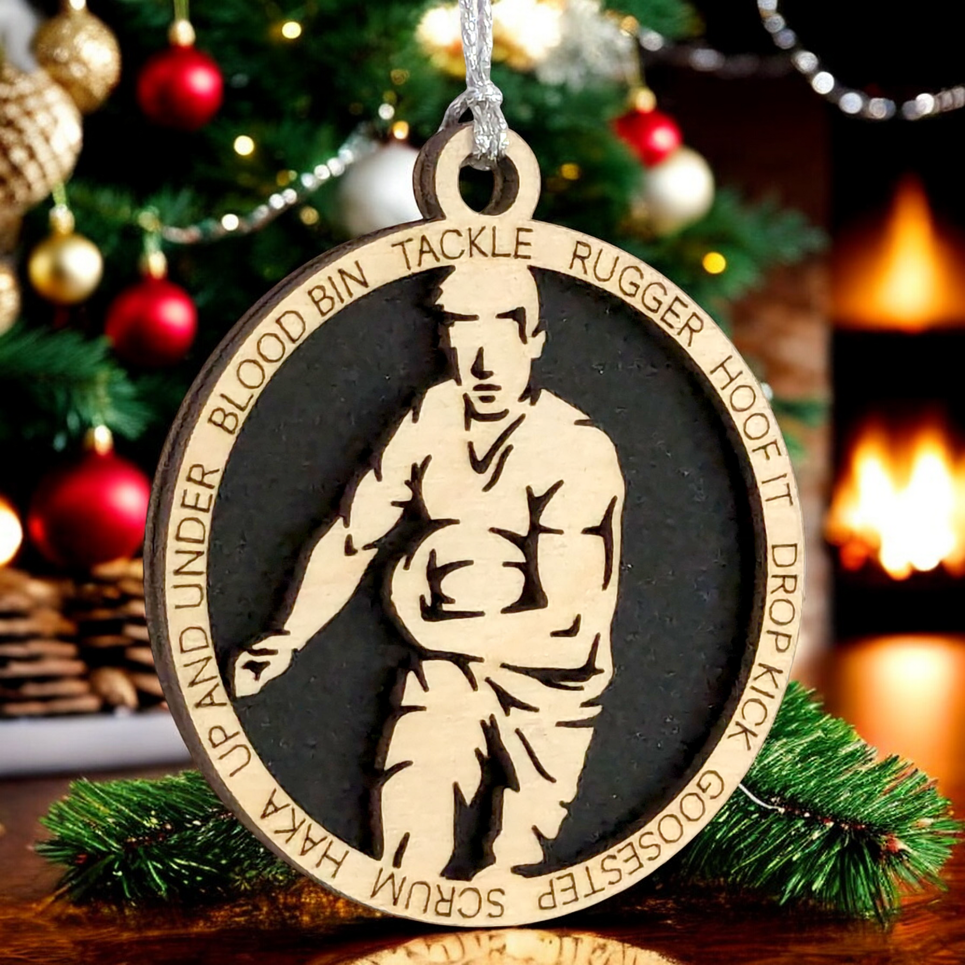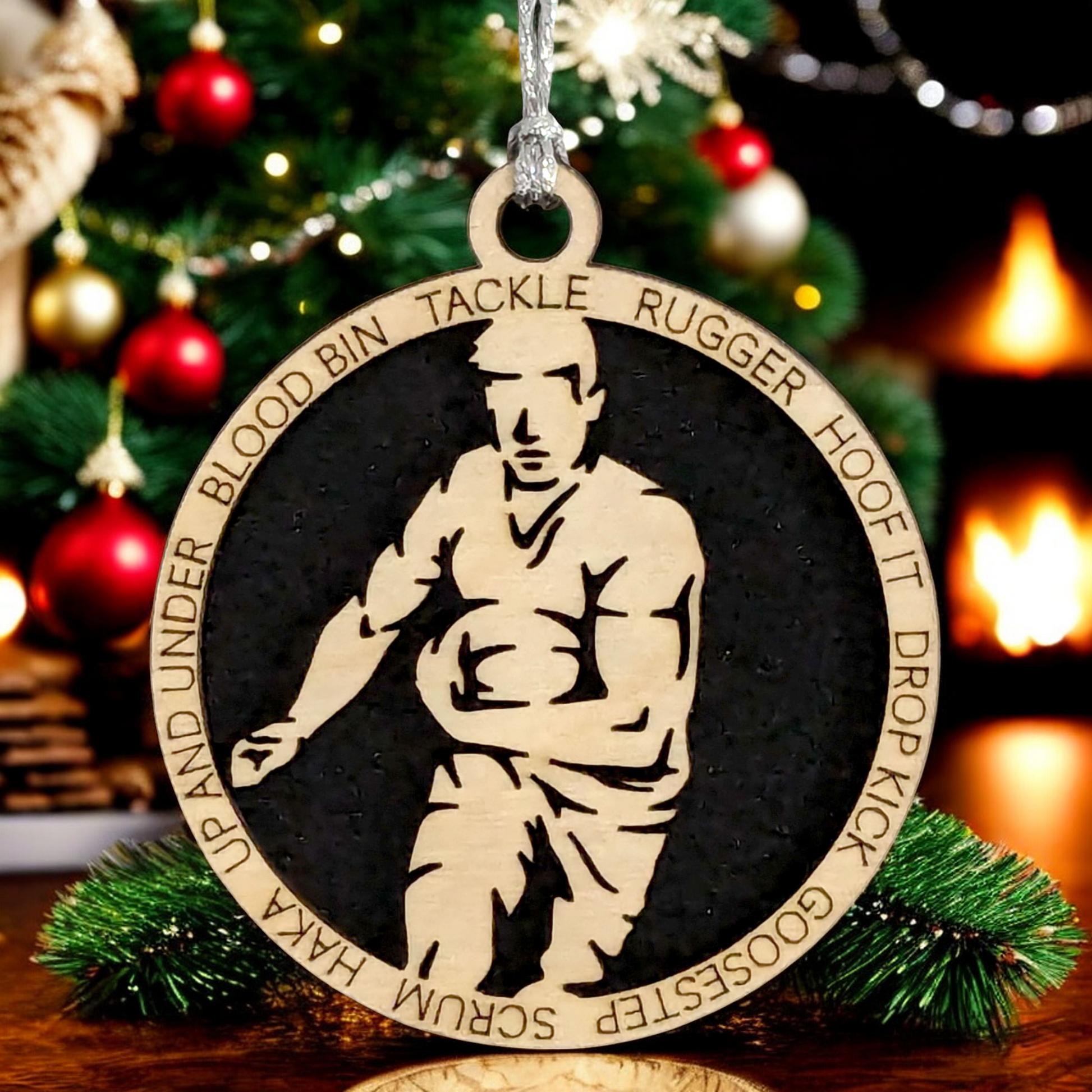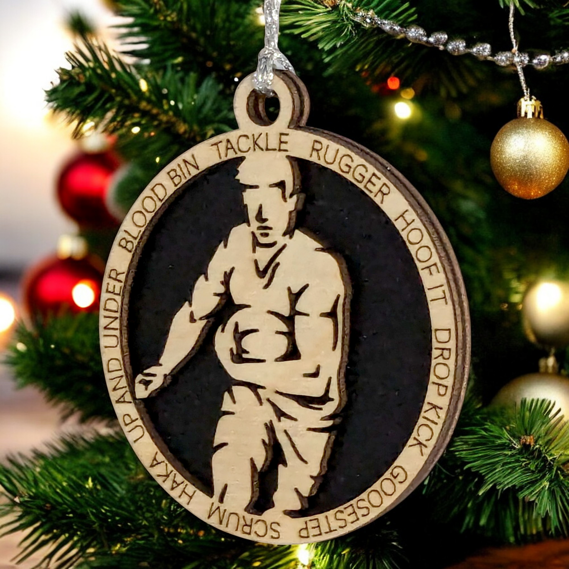 3" Handcrafted Wooden Personalized Male Rugby Christmas Ornament - Custom Sports Holiday Decor for Rugby Fans