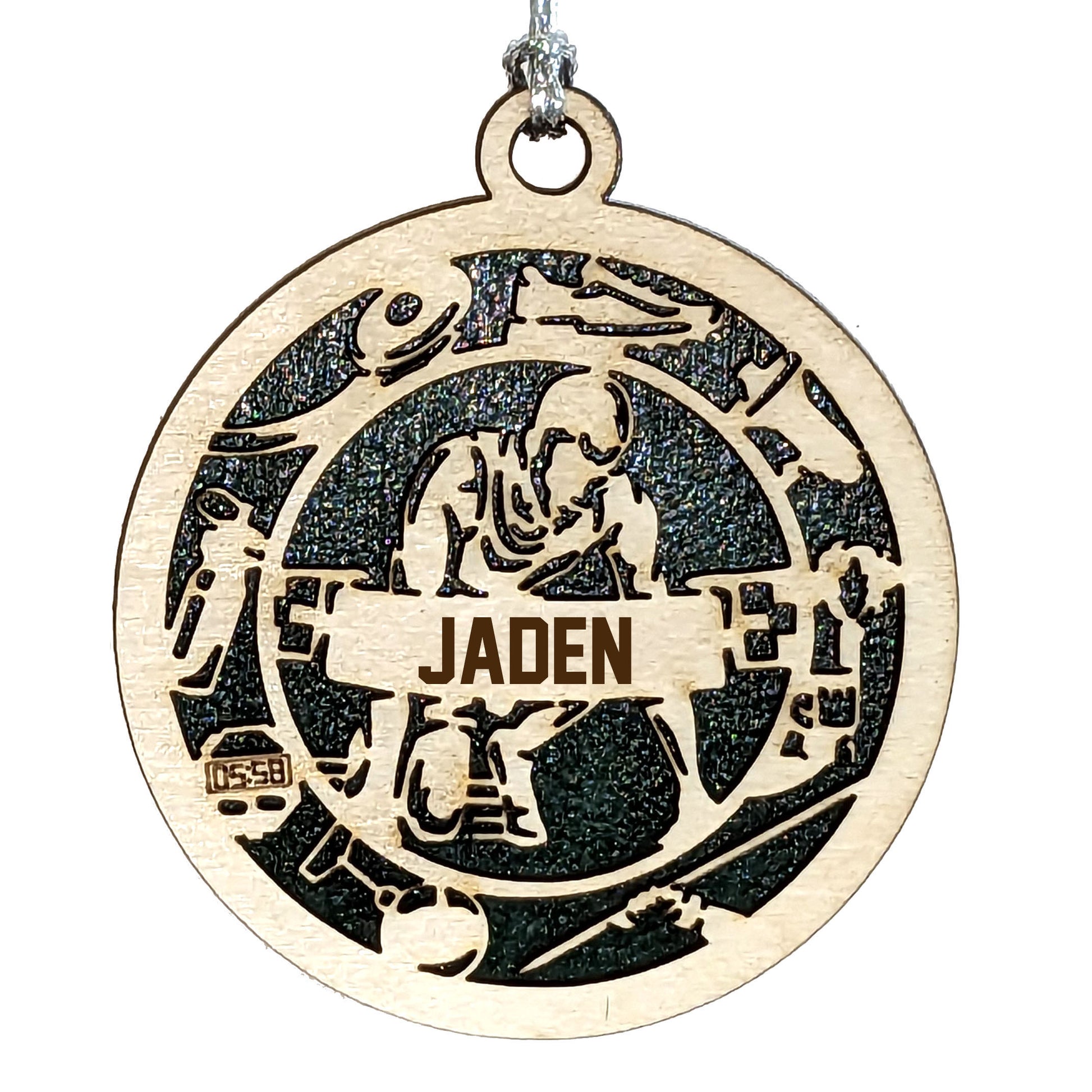 - Wooden ornament is approximately 3 inches in diameter and 1/4 inch thick.