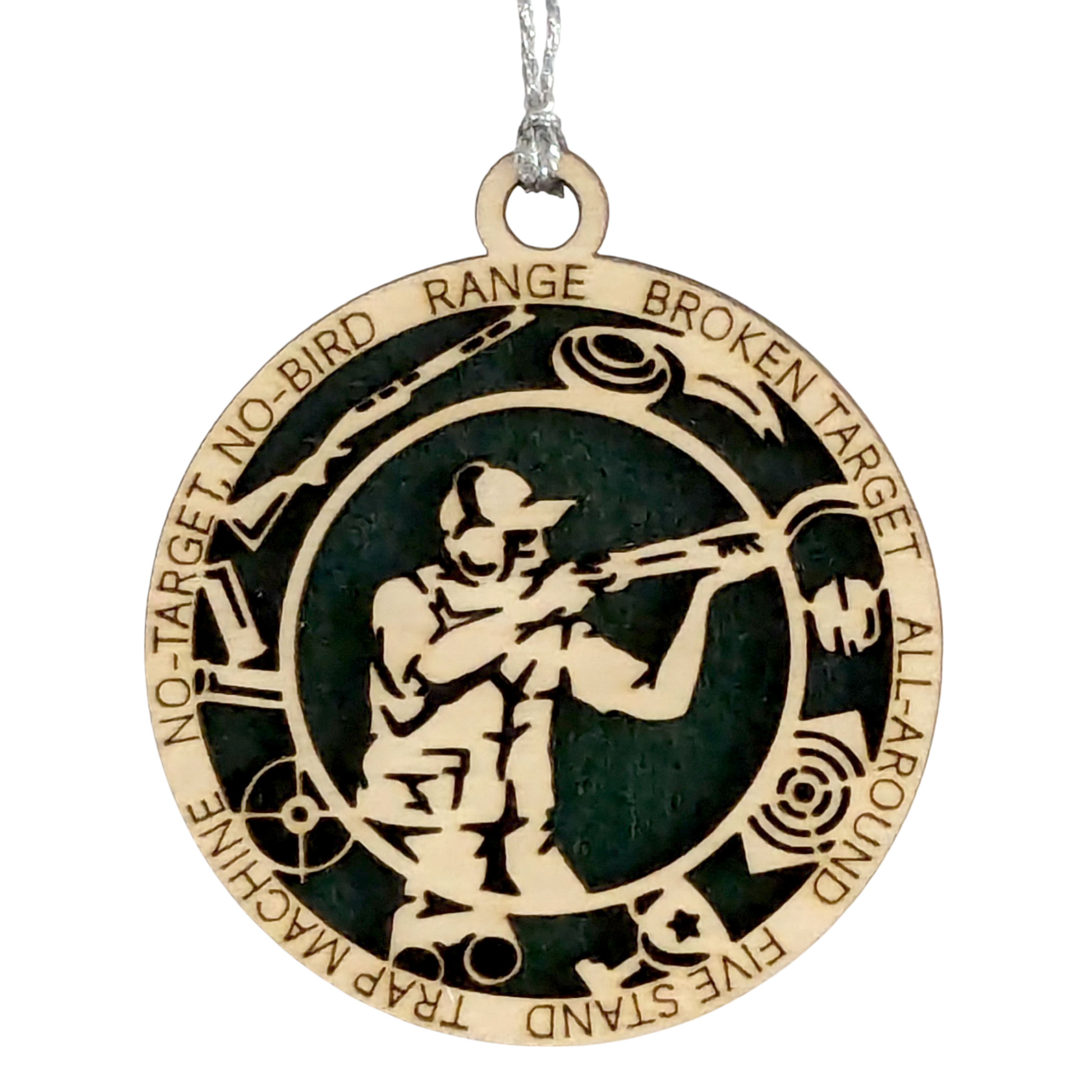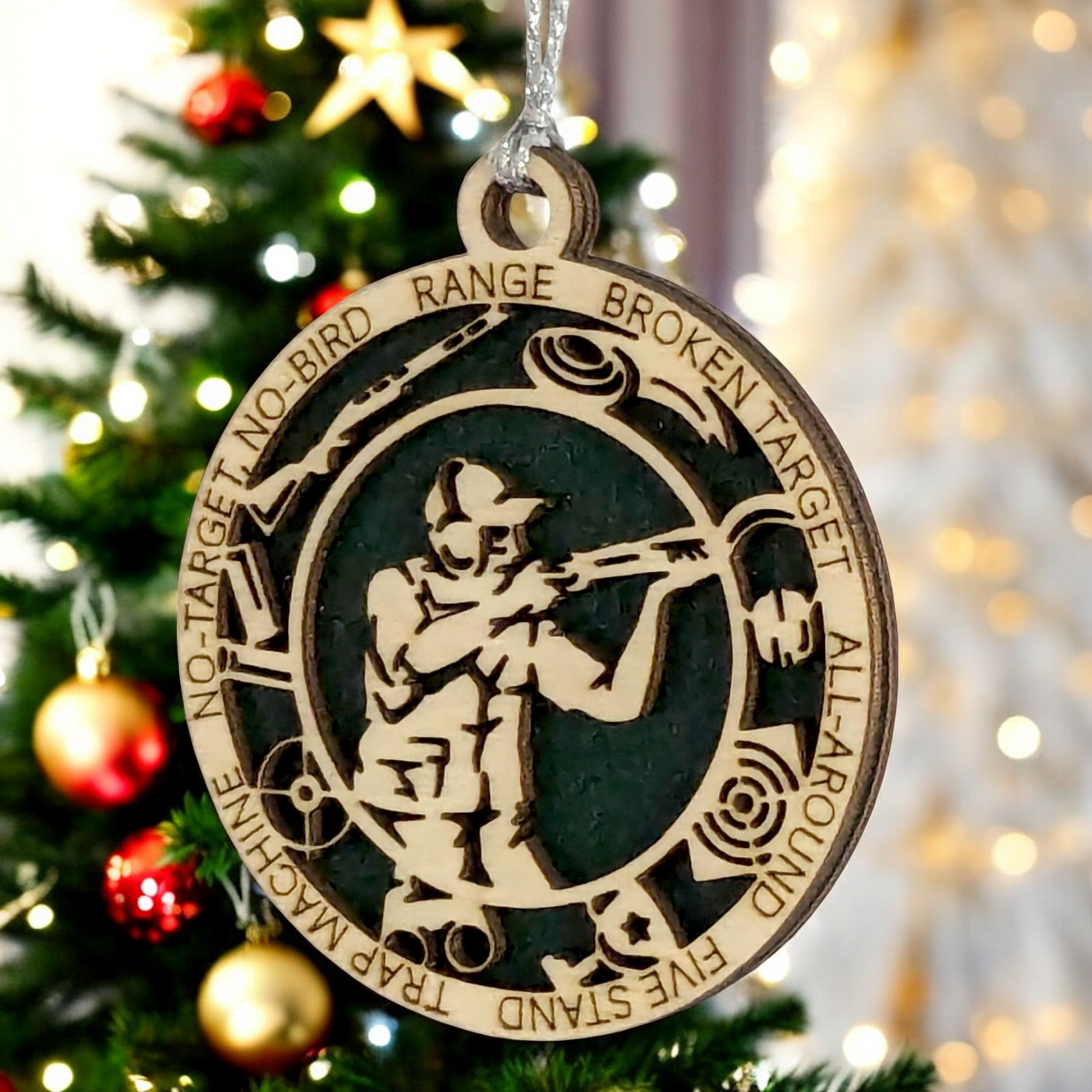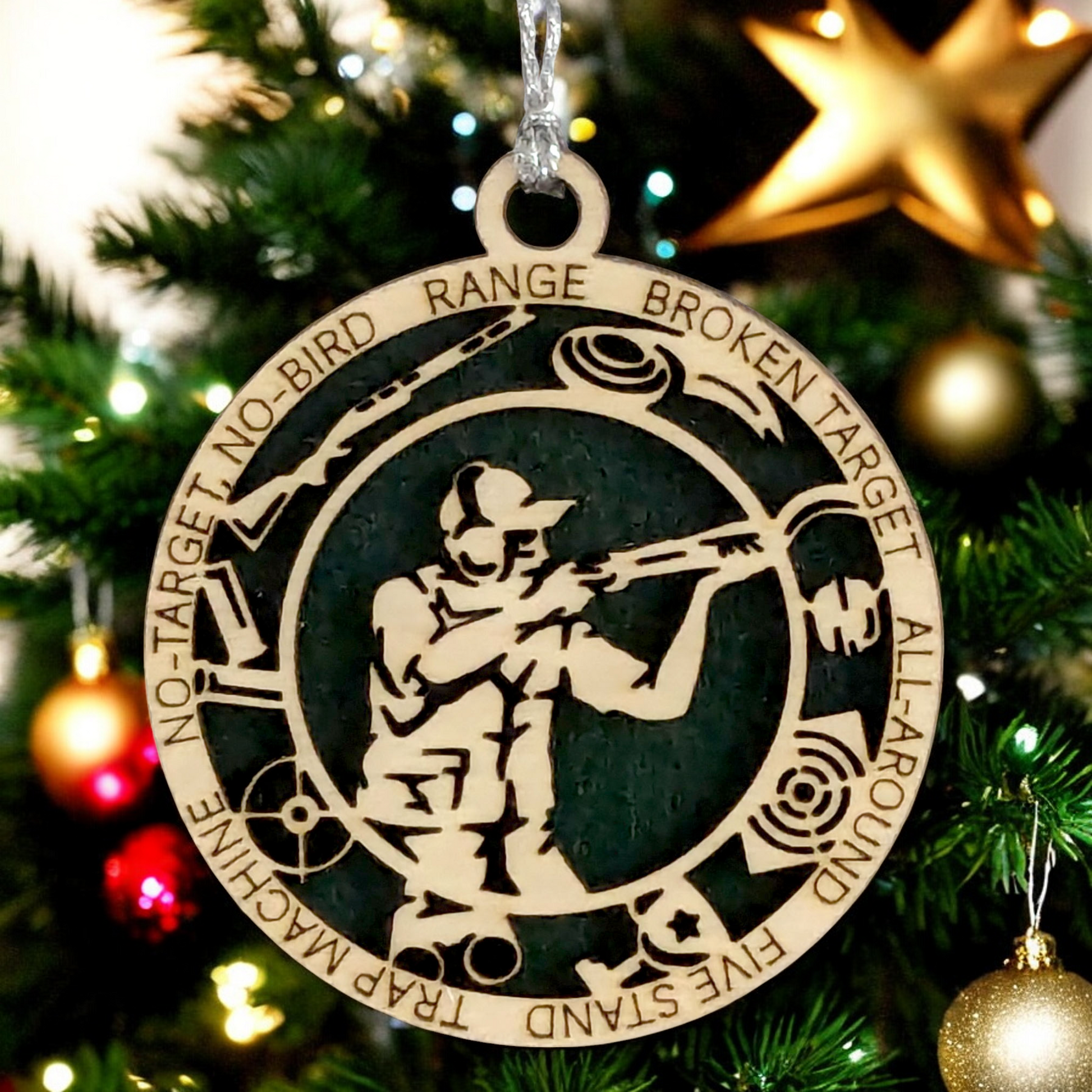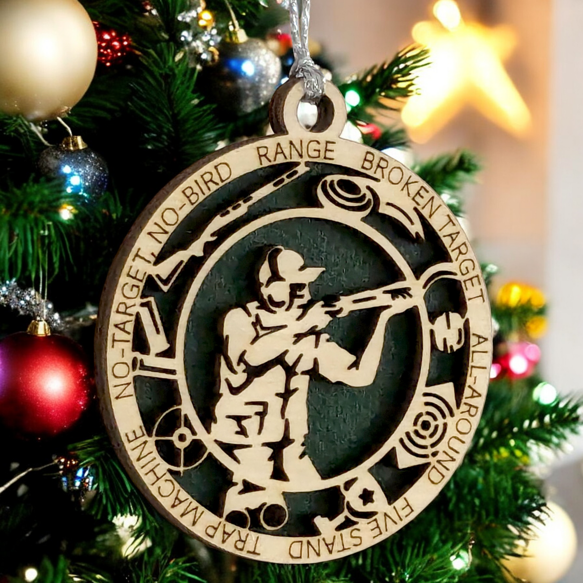 3-Inch Handcrafted Wooden Personalized Trap Shooting Christmas Ornament for Men - Customizable Wood Ornament for Male Trap Shooter - Holiday Keepsake and Unique Gift - Laser Cut and Hand-Painted