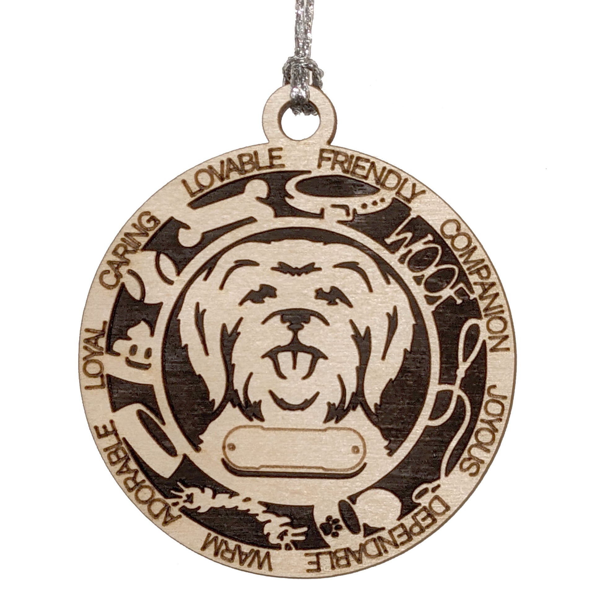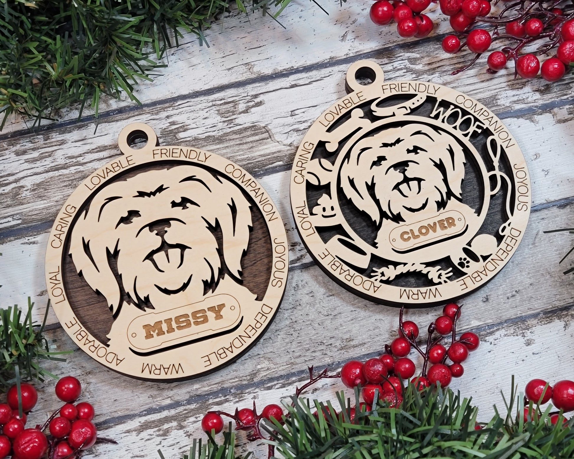 Personalized 3" Round Wooden Dog Christmas Ornament - Customizable Short Hair Maltese Design - Handcrafted in USA - Choose Background Color - Add Dog's Name & Text - Perfect Holiday Gift!