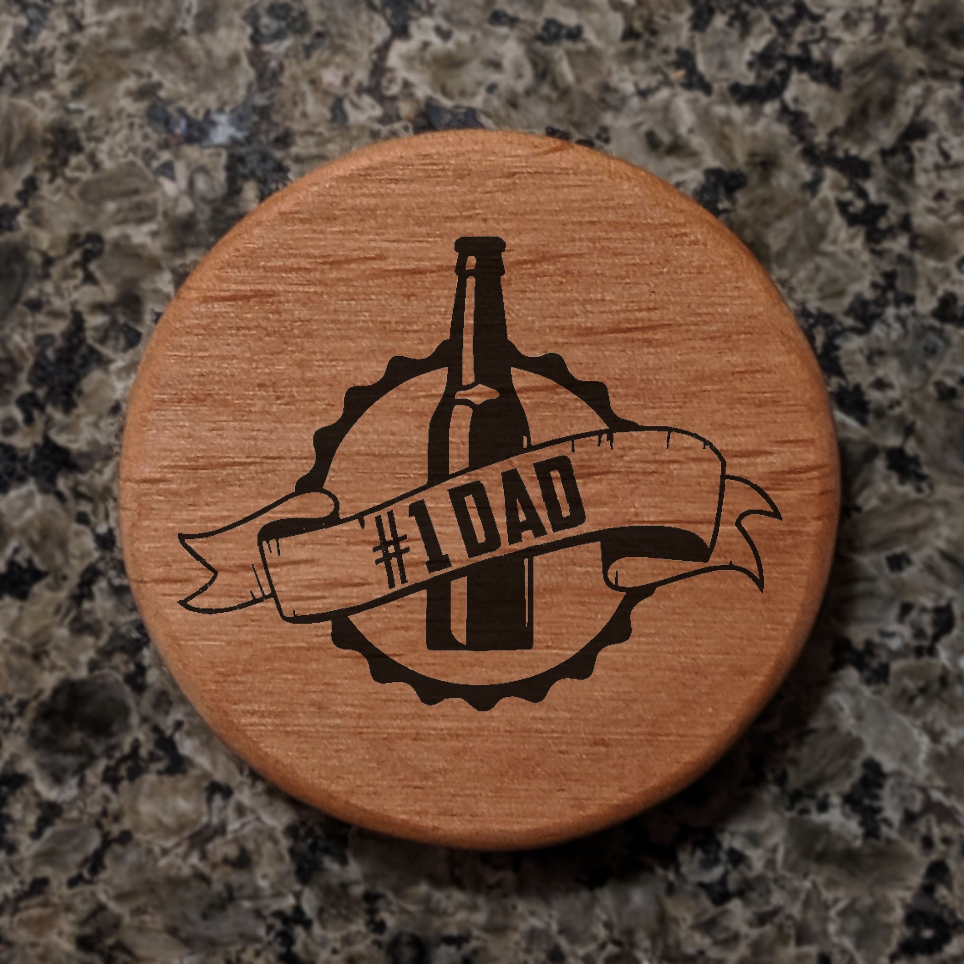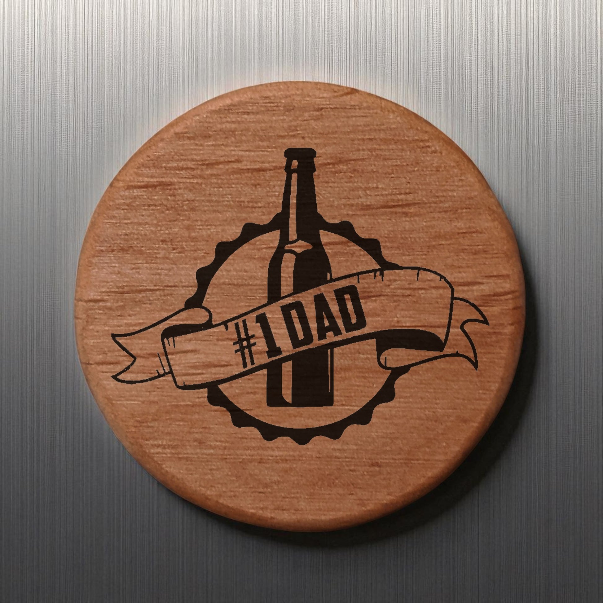 Alder Wood Bottle Opener - 3" Round Magnetic Beer Opener with #1 DAD Engraving - Fridge Magnet Bottle Opener for Dad - Perfect Father's Day Gift for Beer Lovers