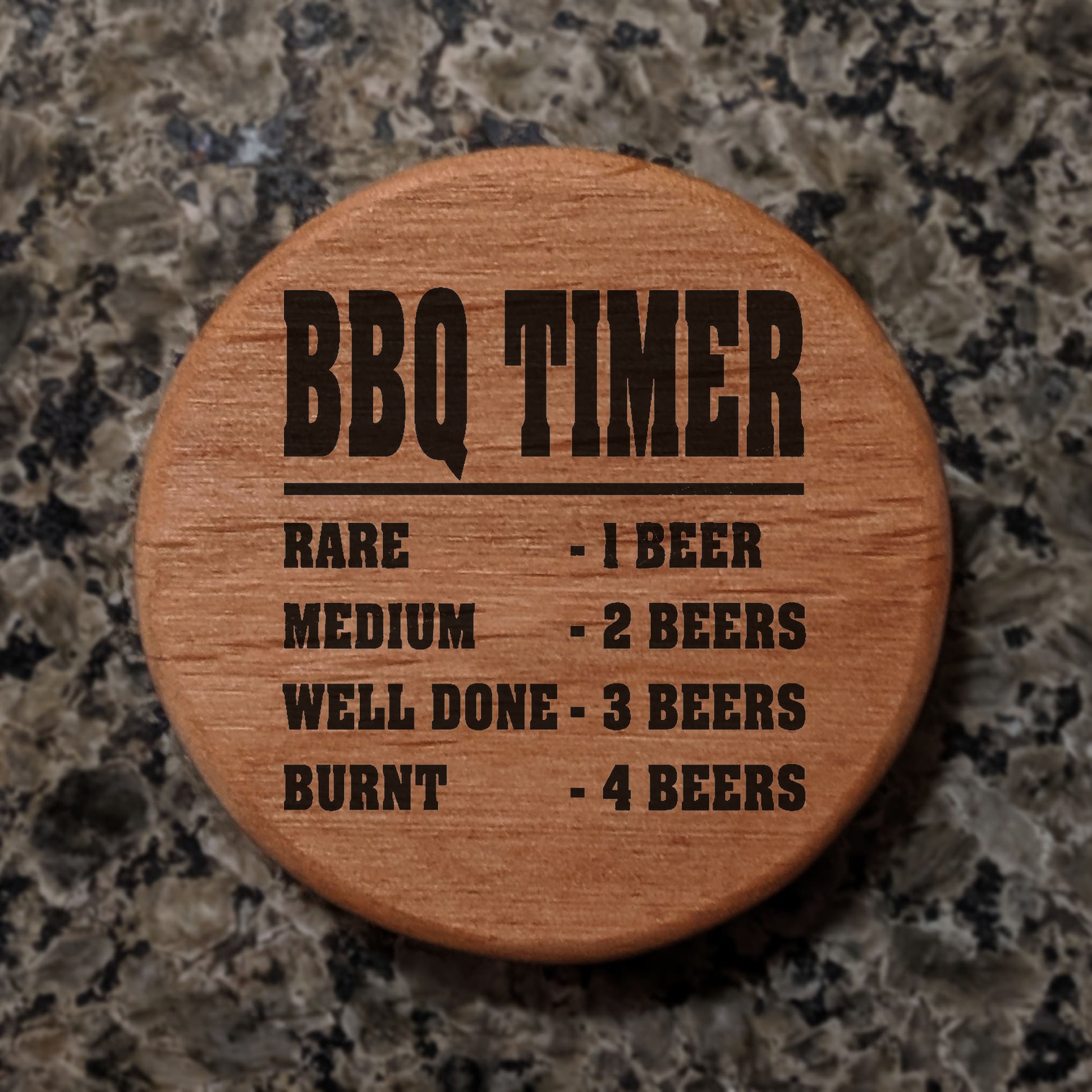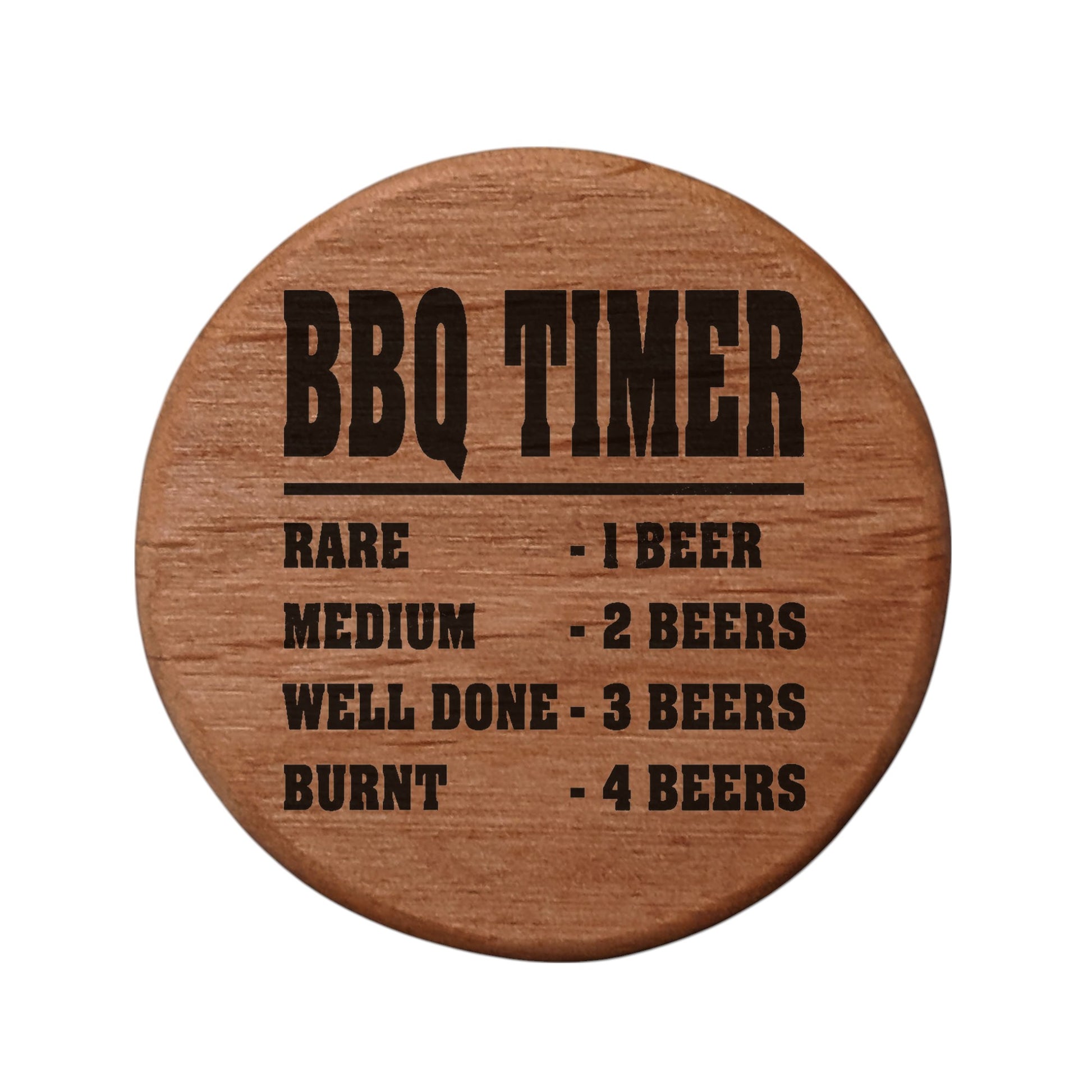BBQ Timer Bottle Opener - 3" Round Alder Wood with Magnetic Beer Opener, Funny Grilling Gift for Dad, Laser Engraved Meat Cooking Guide, Fridge Magnet for Kitchen