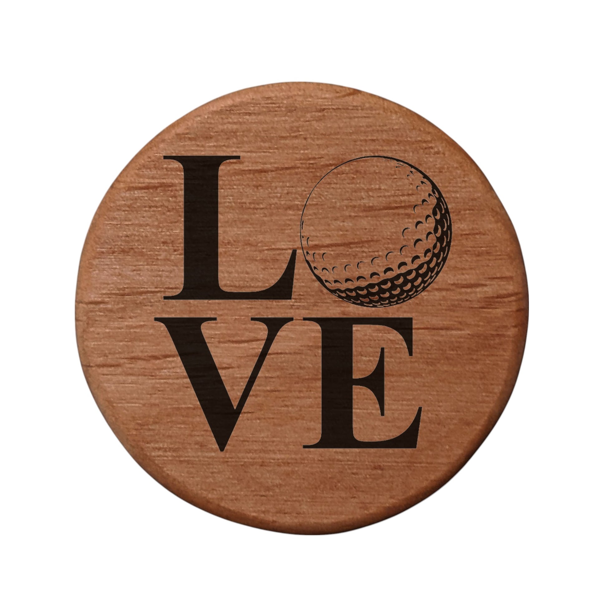 Love Golf Ball Alder Wood Bottle Opener - 3" Round Magnetic Beer Opener with Metal Insert - Perfect for Fridge, Kegerator, BBQ Grill - Laser Engraved Golf Gift